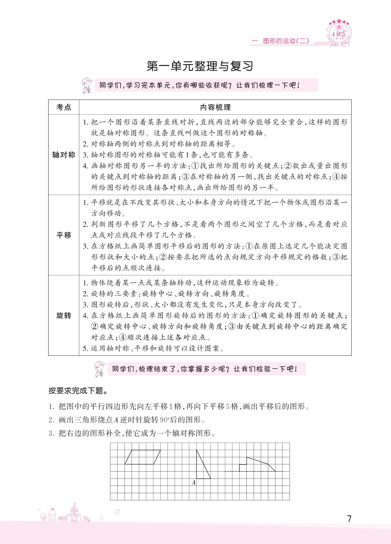 2022下册五年级数学冀教版 一 图形的运动(二)——第一单元整理与复习