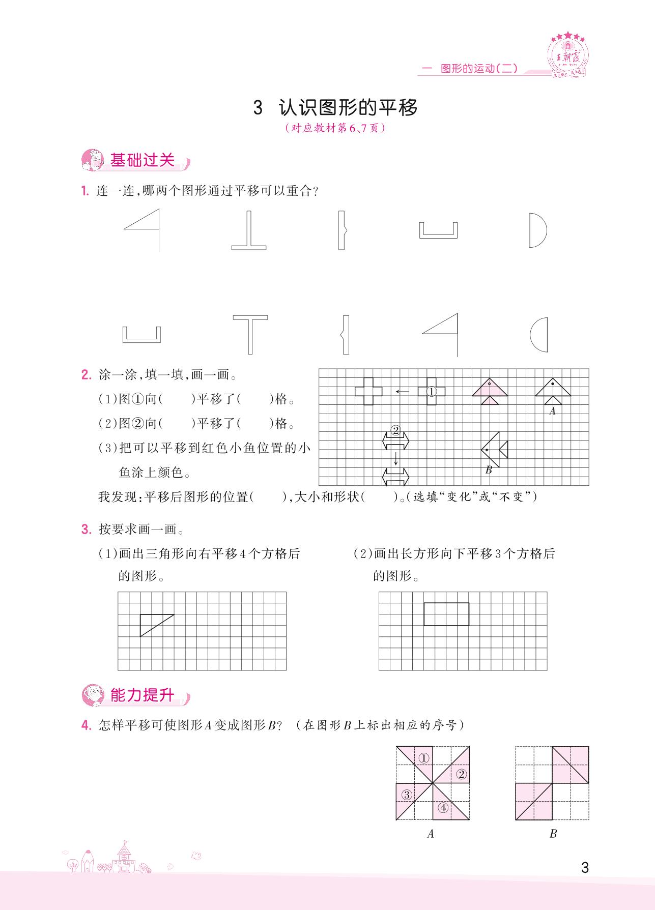 2022下册五年级数学冀教版 一 图形的运动(二)——3 认识图形的平移