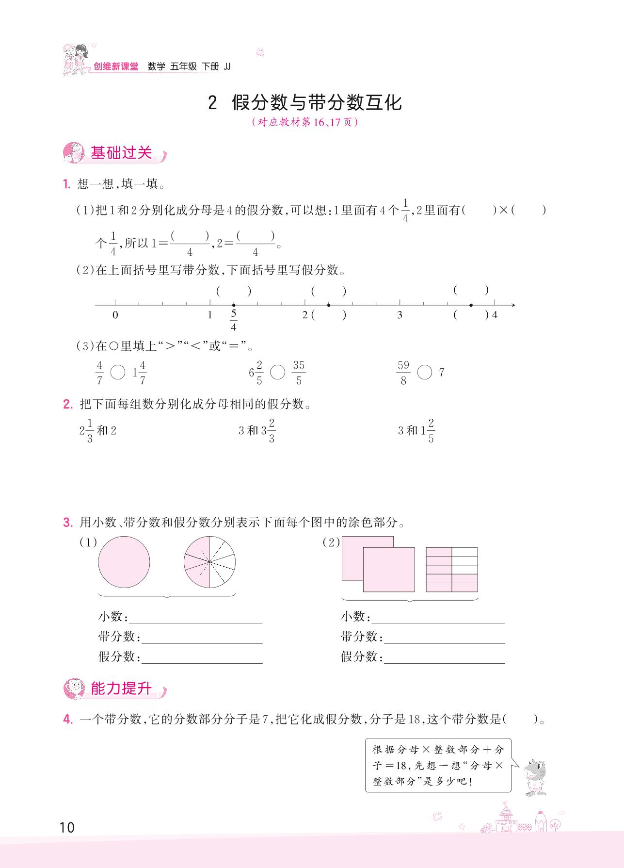 2022下册五年级数学冀教版 二 异分母分数加减法——2 假分数与带分数互化