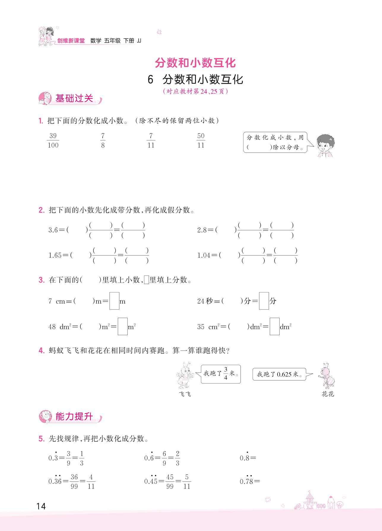 2022下册五年级数学冀教版 二 异分母分数加减法——6 分数和小数互化