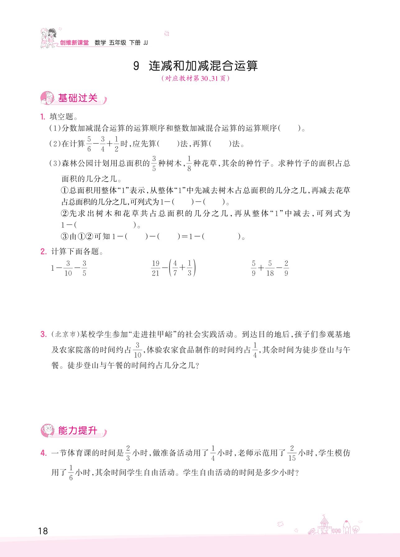2022下册五年级数学冀教版 二 异分母分数加减法——9 连减和加减混合运算