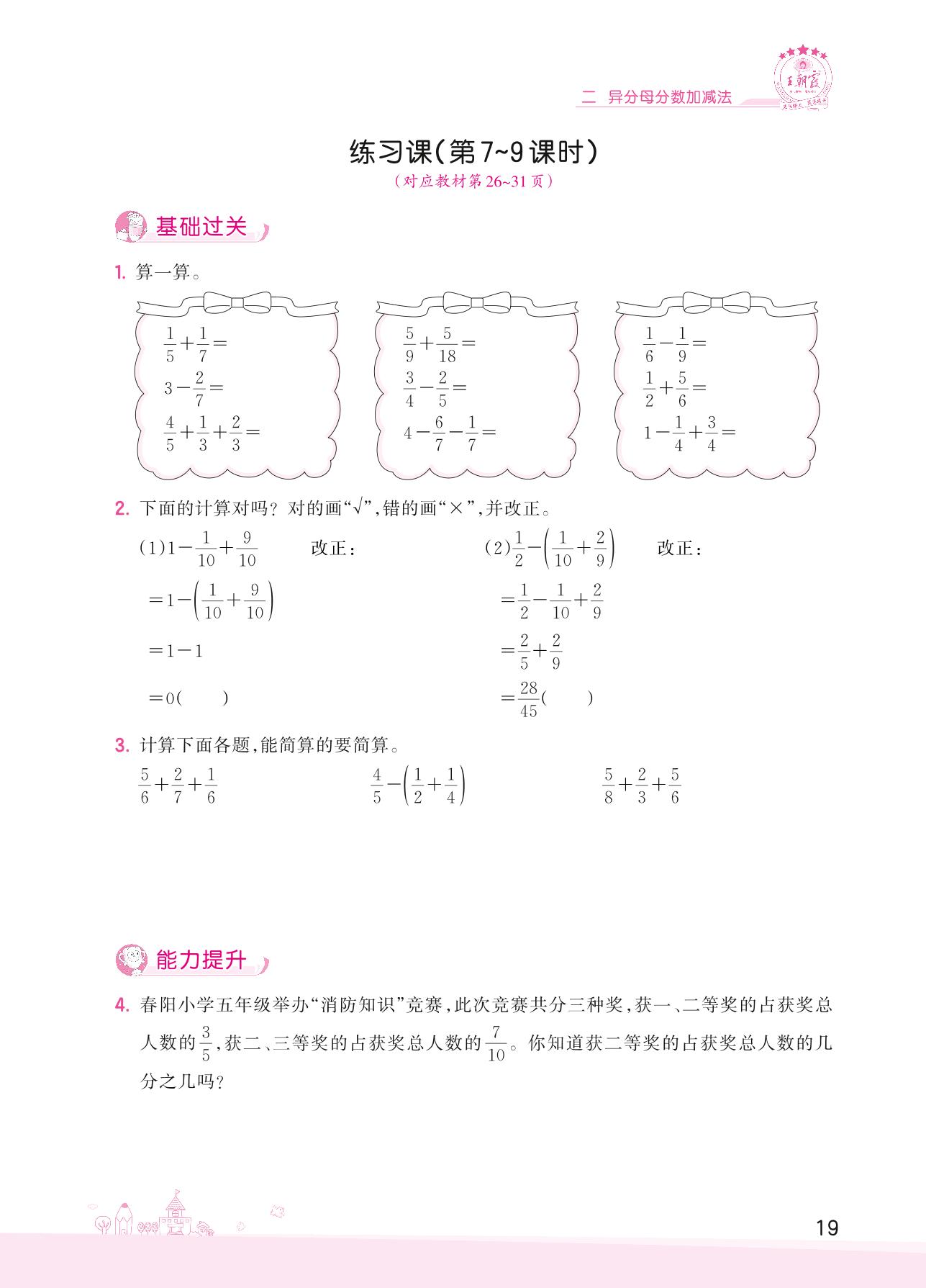 2022下册五年级数学冀教版 二 异分母分数加减法——练习课(第7~9课时)