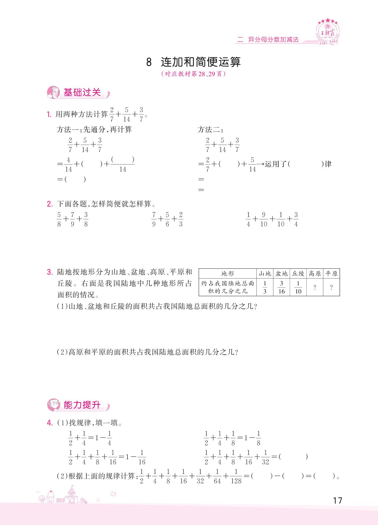 2022下册五年级数学冀教版 二 异分母分数加减法——8 连加和简便运算