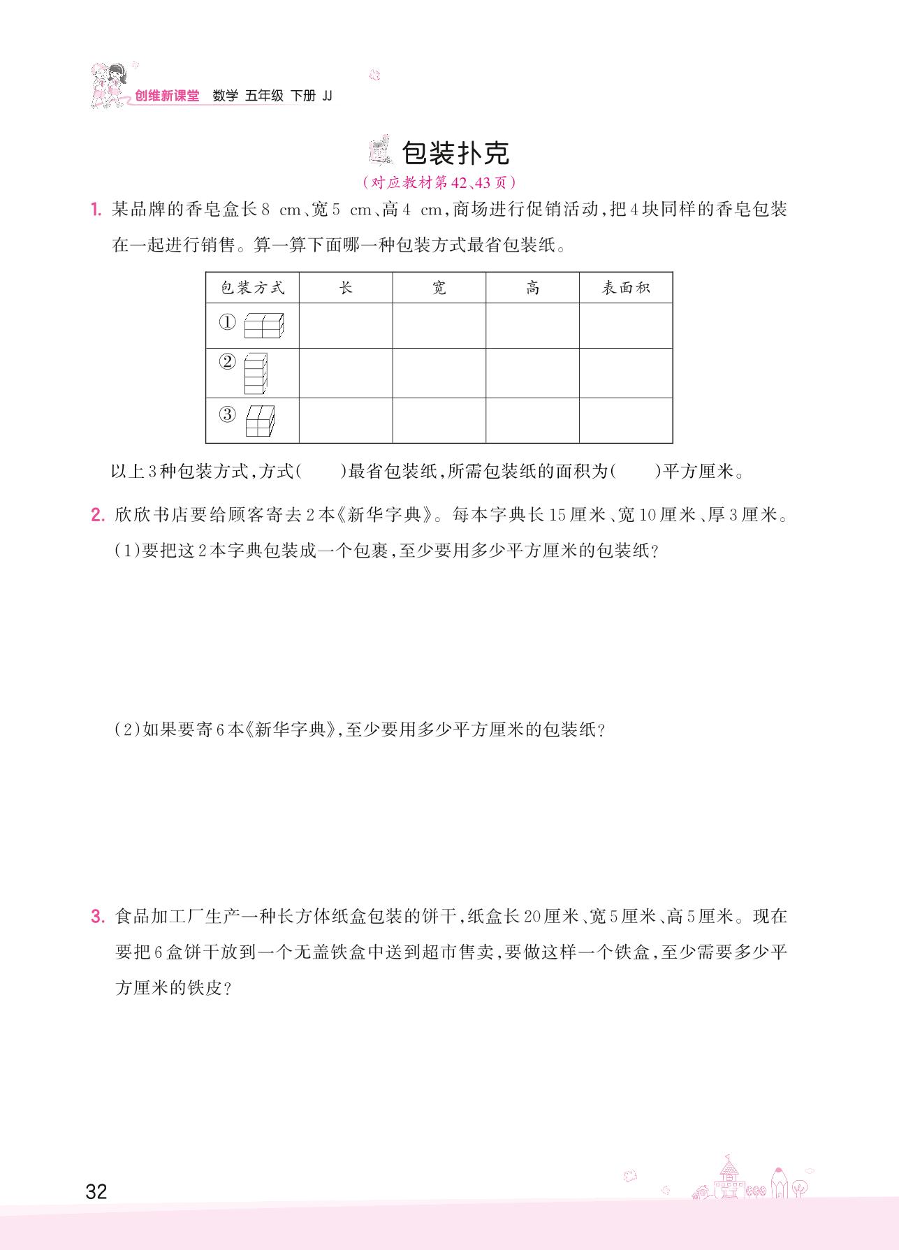 2022下册五年级数学冀教版 三 长方体和正方体——包装扑克