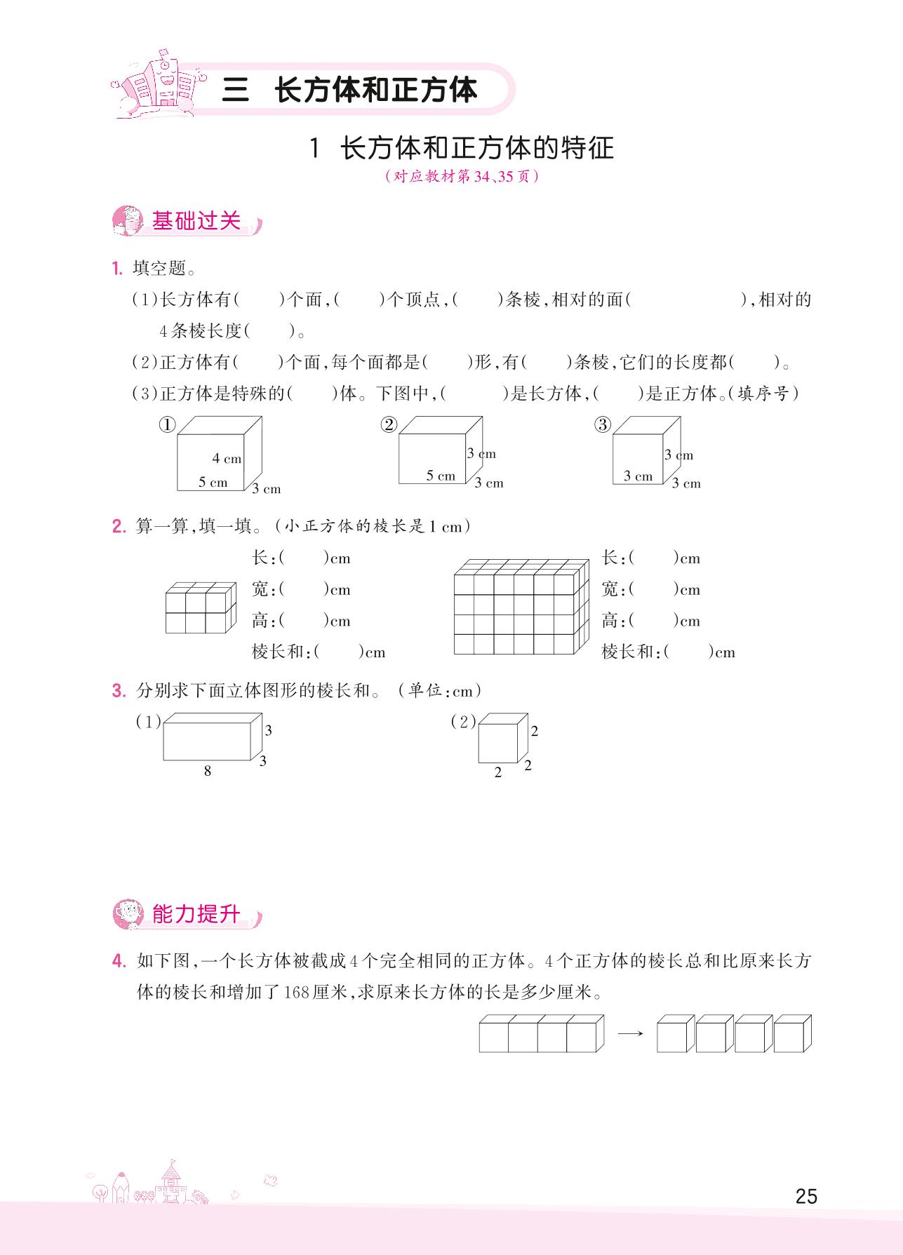 2022下册五年级数学冀教版 三 长方体和正方体——1 长方体和正方体的特征