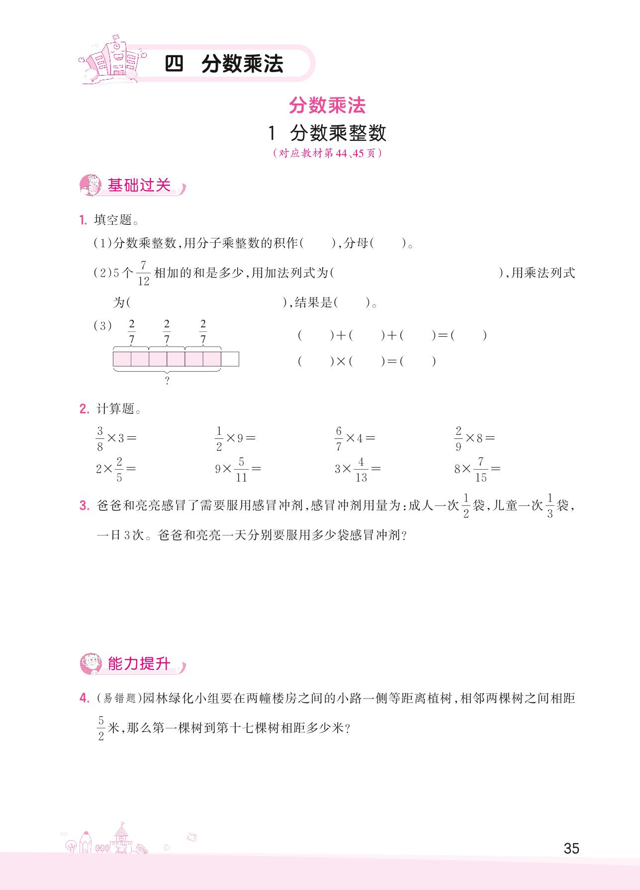 2022下册五年级数学冀教版 四 分数乘法——1 分数乘整数