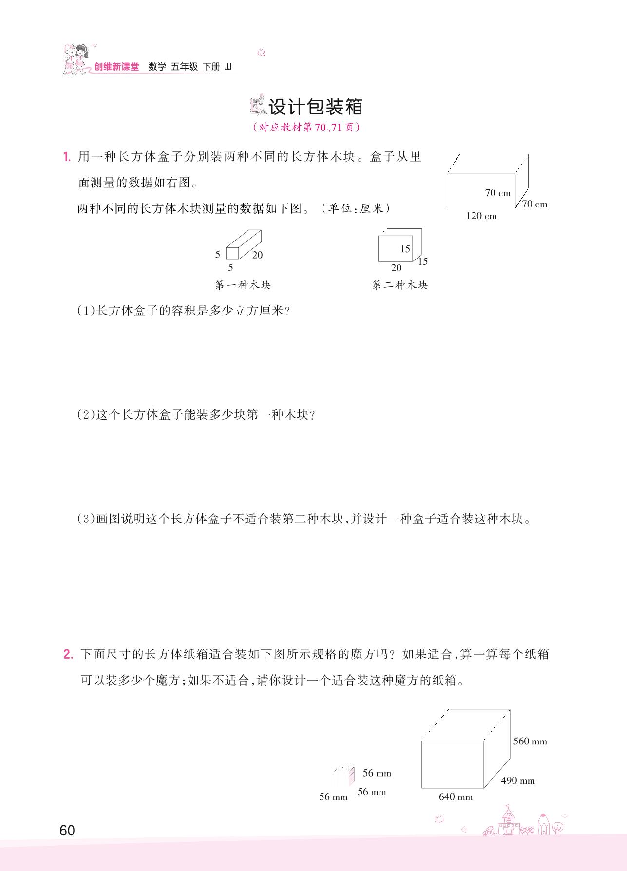2022下册五年级数学冀教版 五 长方体和正方体的体积——设计包装箱