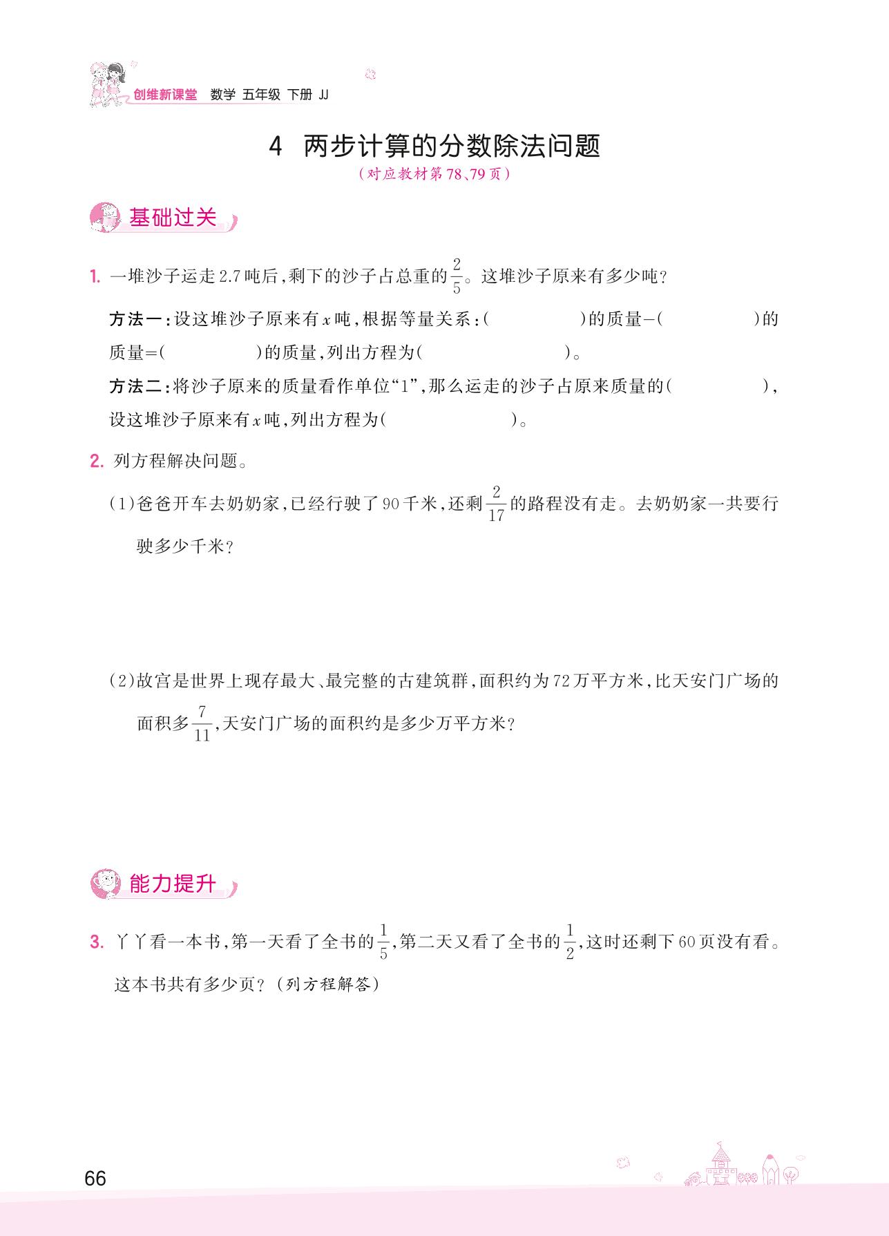 2022下册五年级数学冀教版 六 分数除法——4 两步计算的分数除法问题