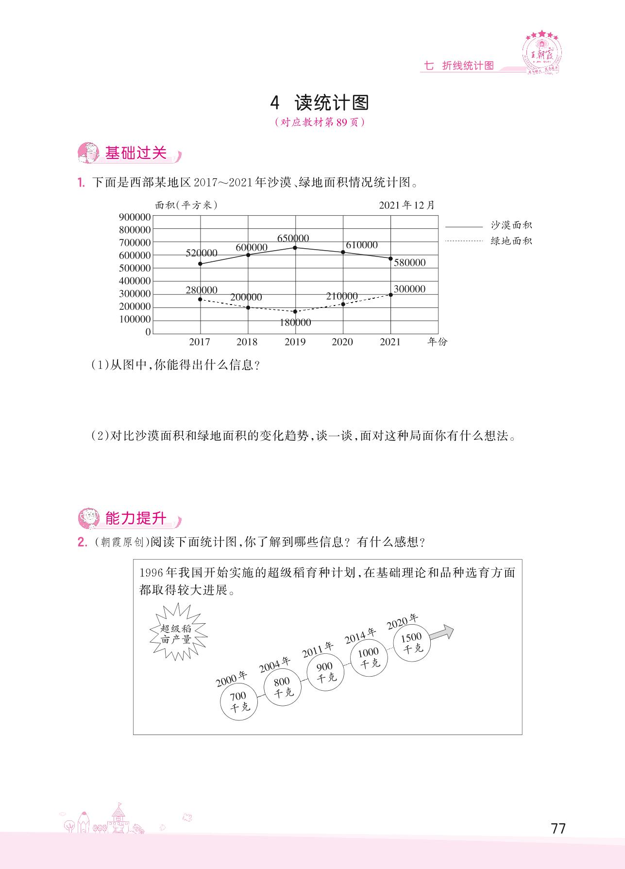2022下册五年级数学冀教版 七 折线统计图——4 读统计图