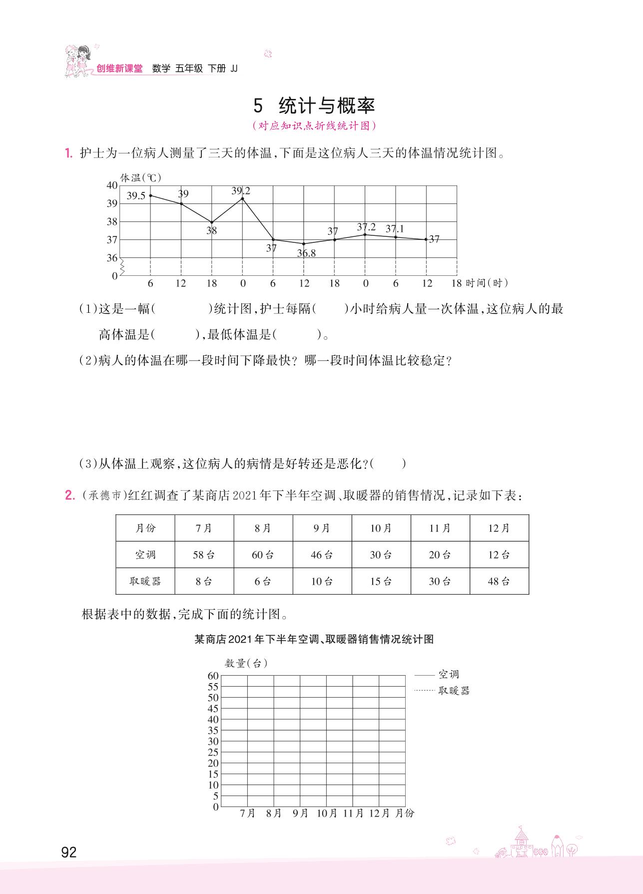 2022下册五年级数学冀教版 整理与评价——5 统计与概率