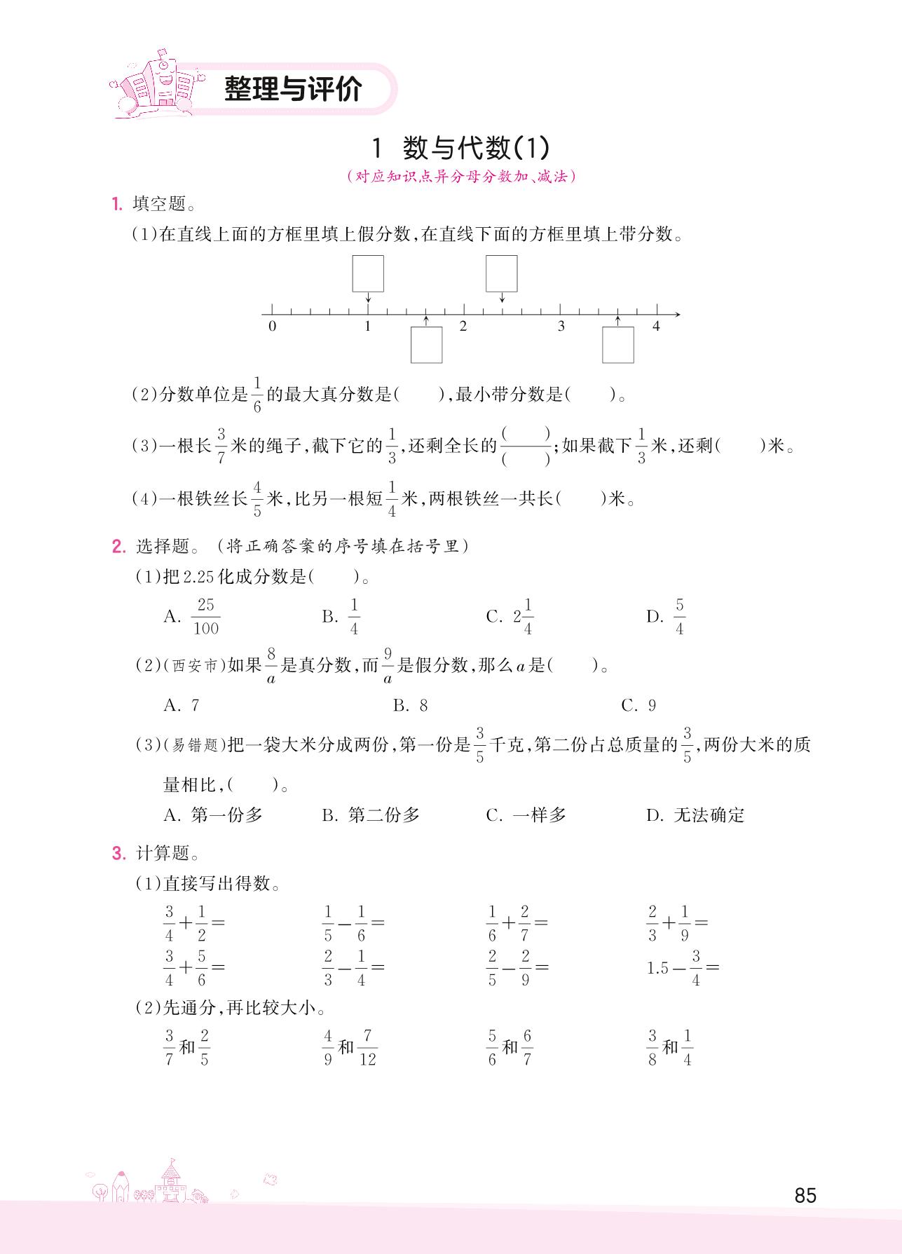 2022下册五年级数学冀教版 整理与评价——1 数与代数(1)