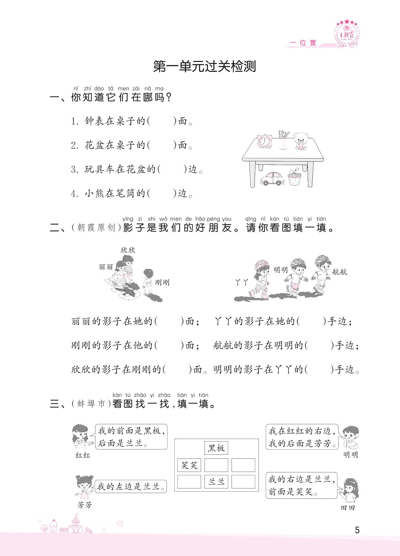 2022下册一年级数学冀教版 一 位置——第一单元过关检测