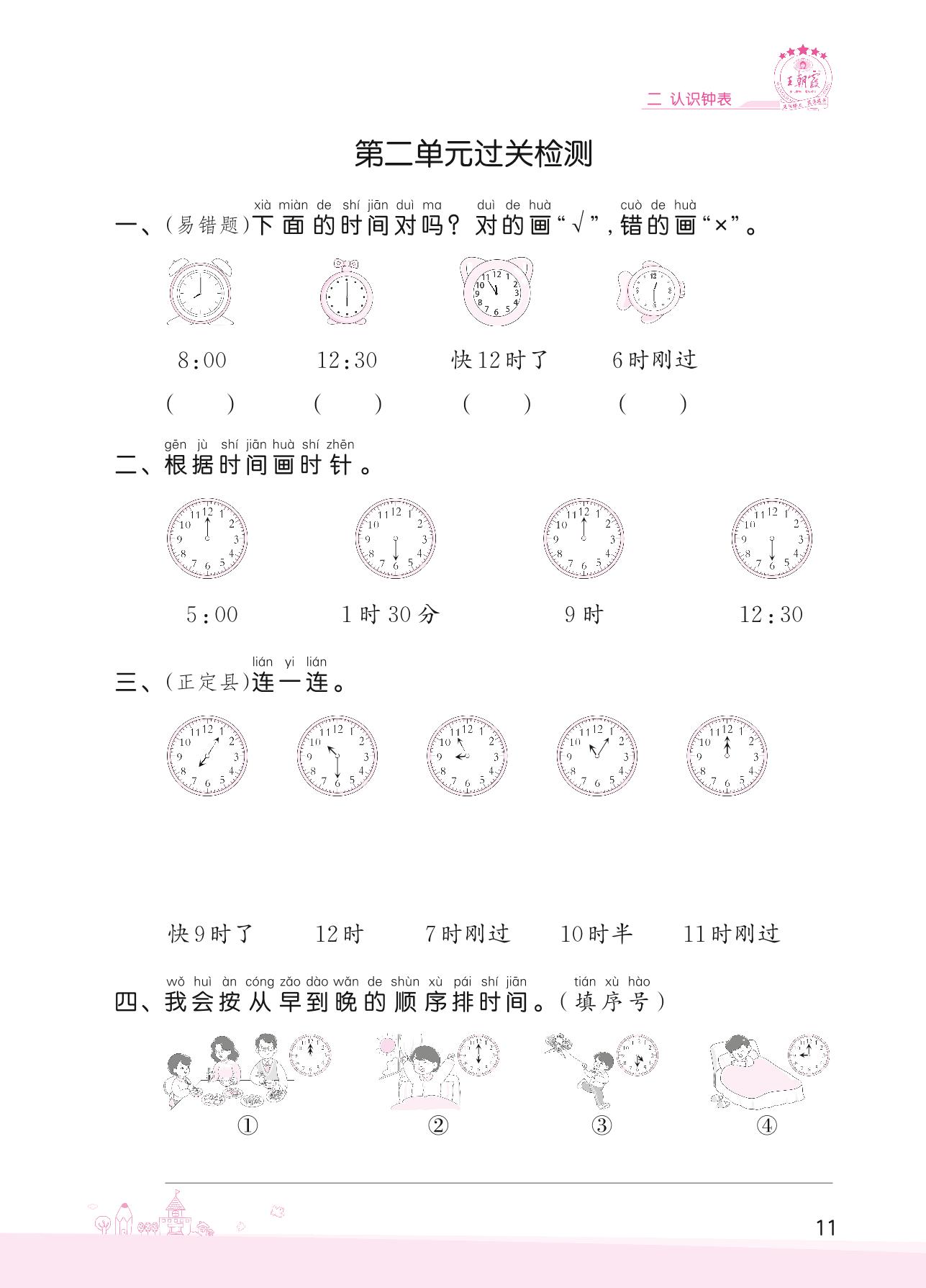 2022下册一年级数学冀教版 二 认识钟表——第二单元过关检测