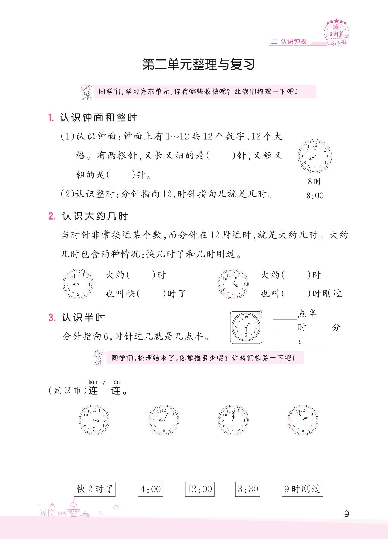 2022下册一年级数学冀教版 二 认识钟表——第二单元整理与复习