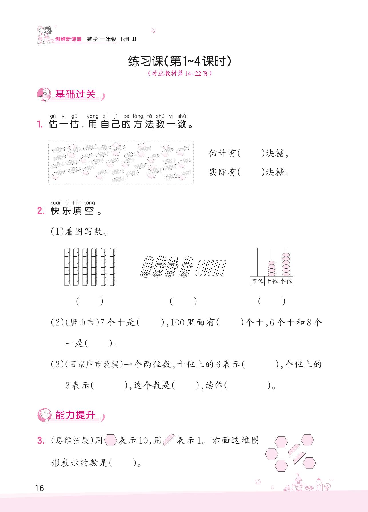2022下册一年级数学冀教版 三 100以内数的认识——练习课(第1~4课时)
