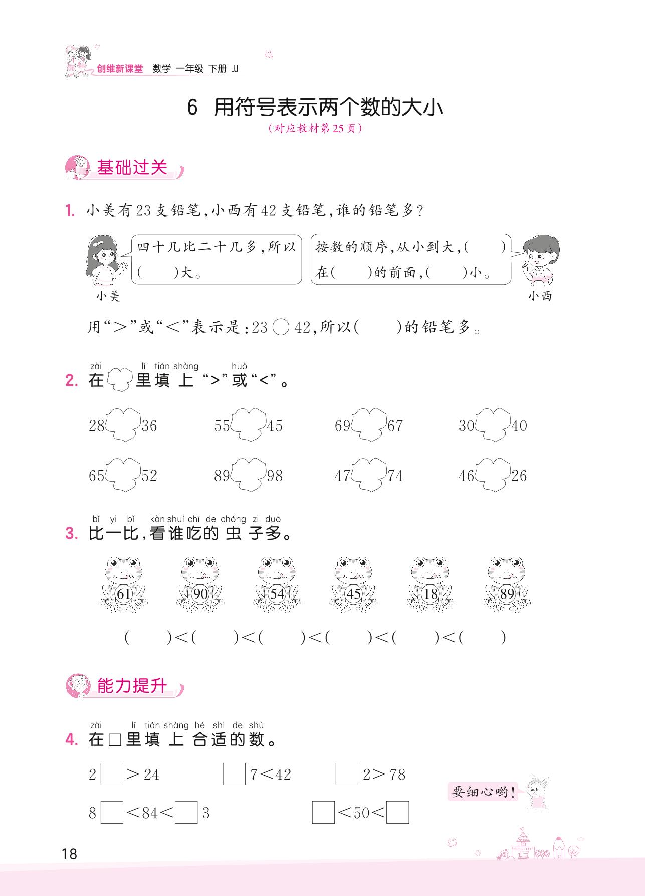 2022下册一年级数学冀教版 三 100以内数的认识——6 用符号表示两个数的大小
