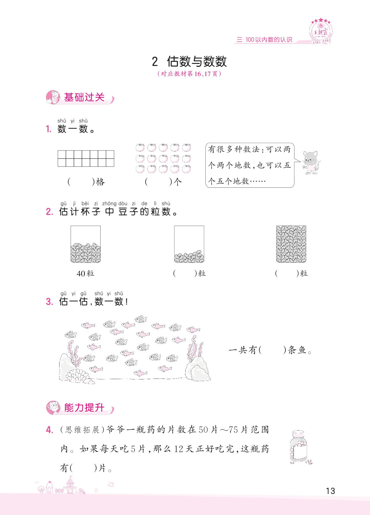 2022下册一年级数学冀教版 三 100以内数的认识——2 估数与数数