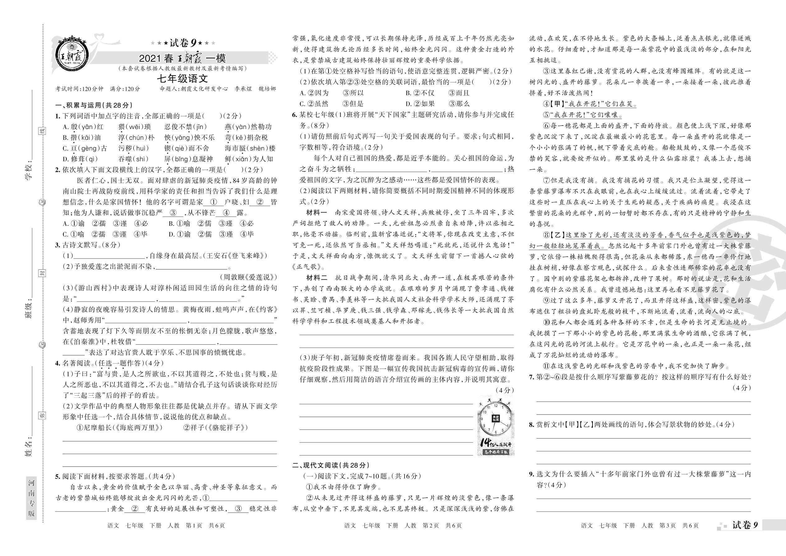 王朝霞期末模拟卷七年级下册语文(人教版)_R2108021627【9】