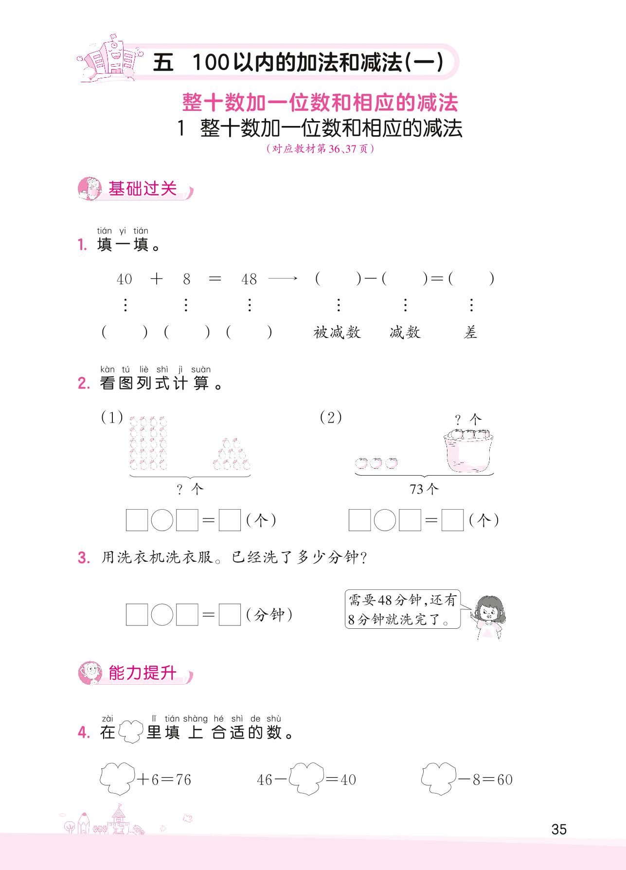 2022下册一年级数学冀教版 五 100以内的加法和减法(一)——1 整十数加一位数和相应的减法
