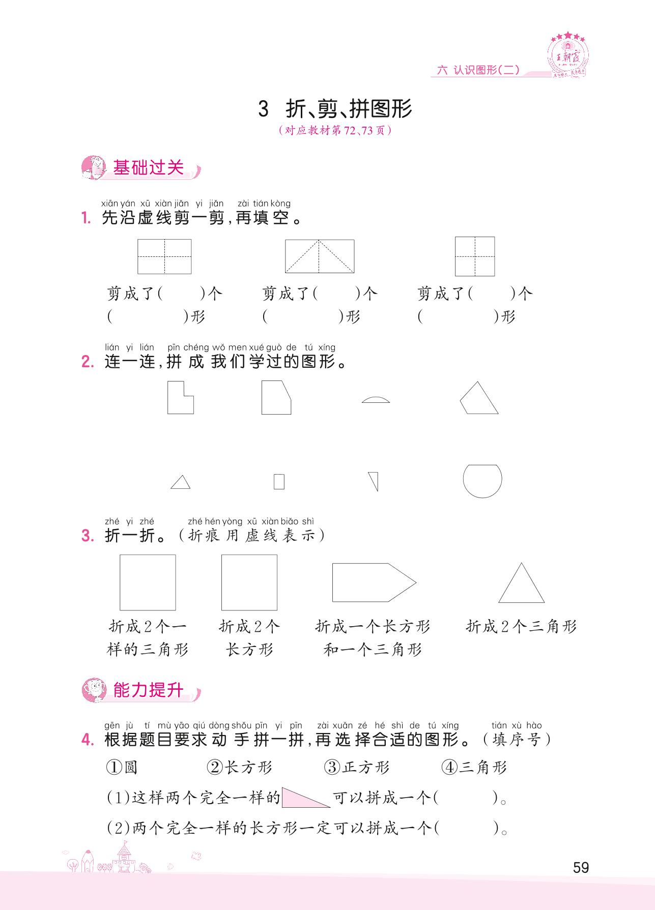 2022下册一年级数学冀教版 六 认识图形(二)——3 折、剪、拼图形