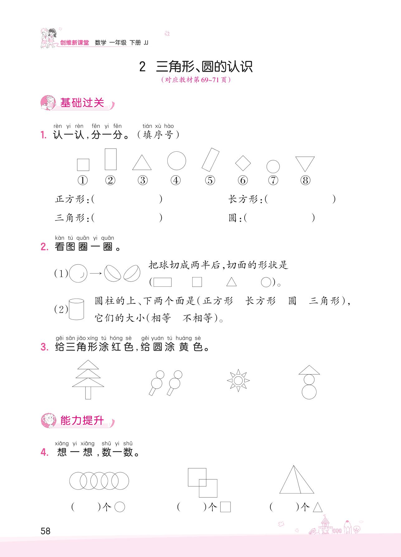 2022下册一年级数学冀教版 六 认识图形(二)——2 三角形、圆的认识