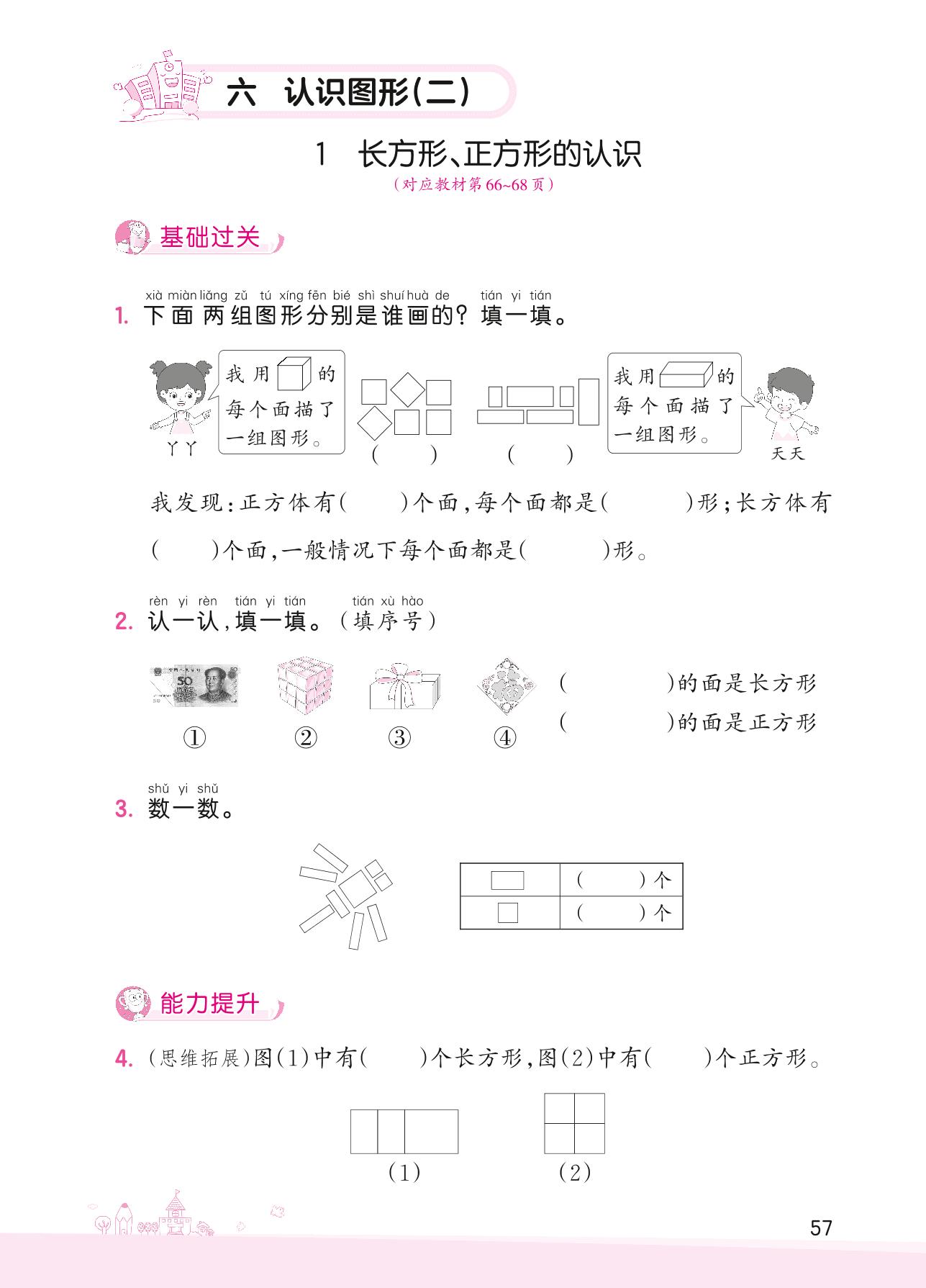 2022下册一年级数学冀教版 六 认识图形(二)——1 长方形、正方形的认识