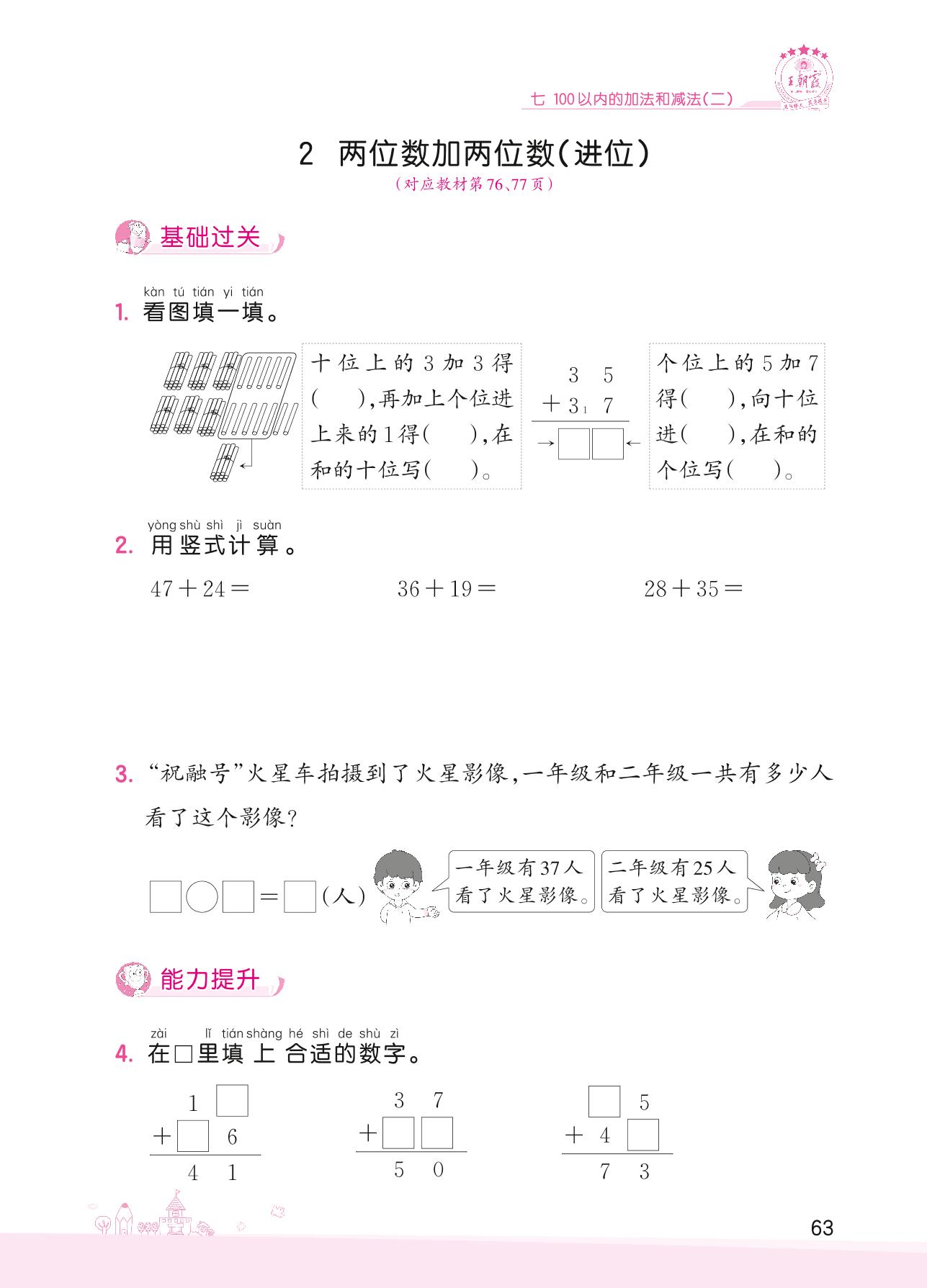 2022下册一年级数学冀教版 七 100以内的加法和减法(二)——2 两位数加两位数(进位)