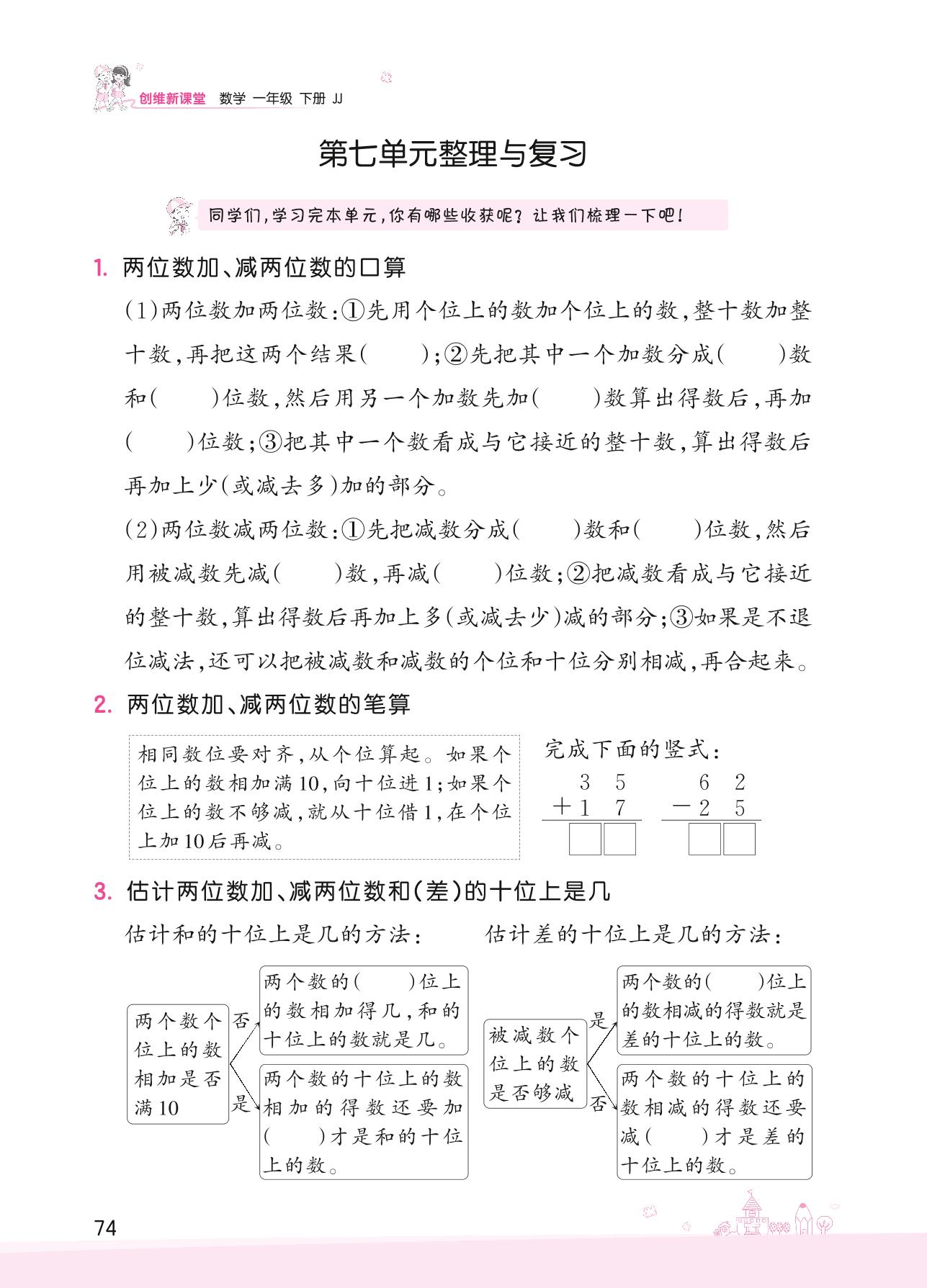 2022下册一年级数学冀教版 七 112以内的加法和减法(二)——第七单元整理与复习