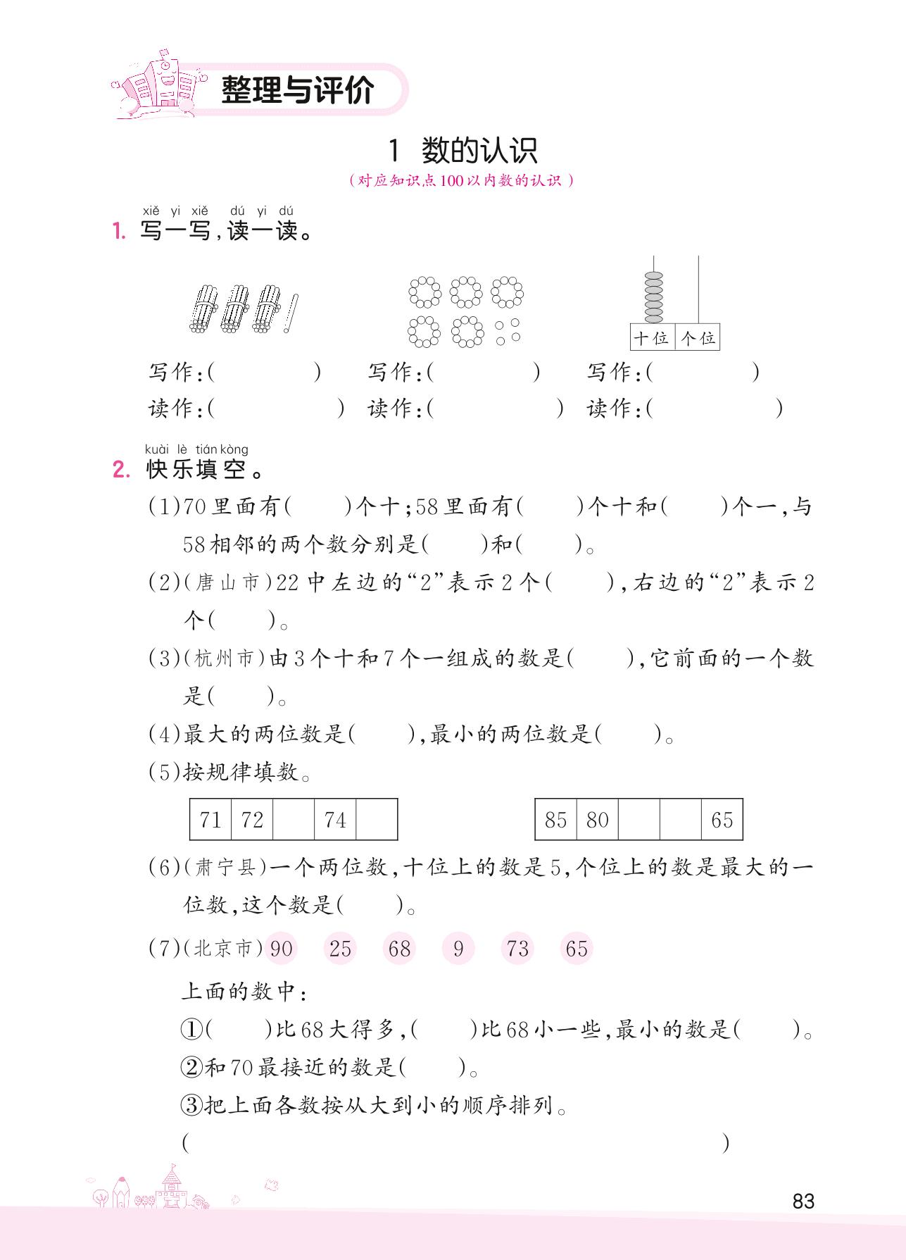 2022下册一年级数学冀教版 整理与评价——1 数的认识