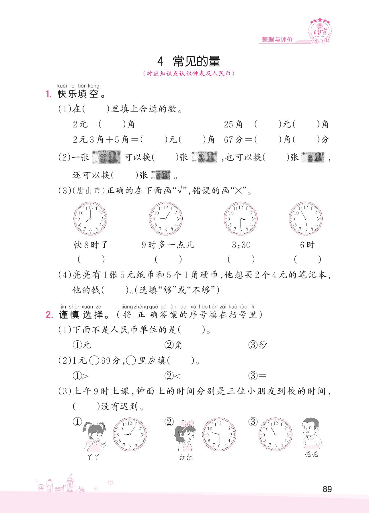 2022下册一年级数学冀教版 整理与评价——4 常见的量