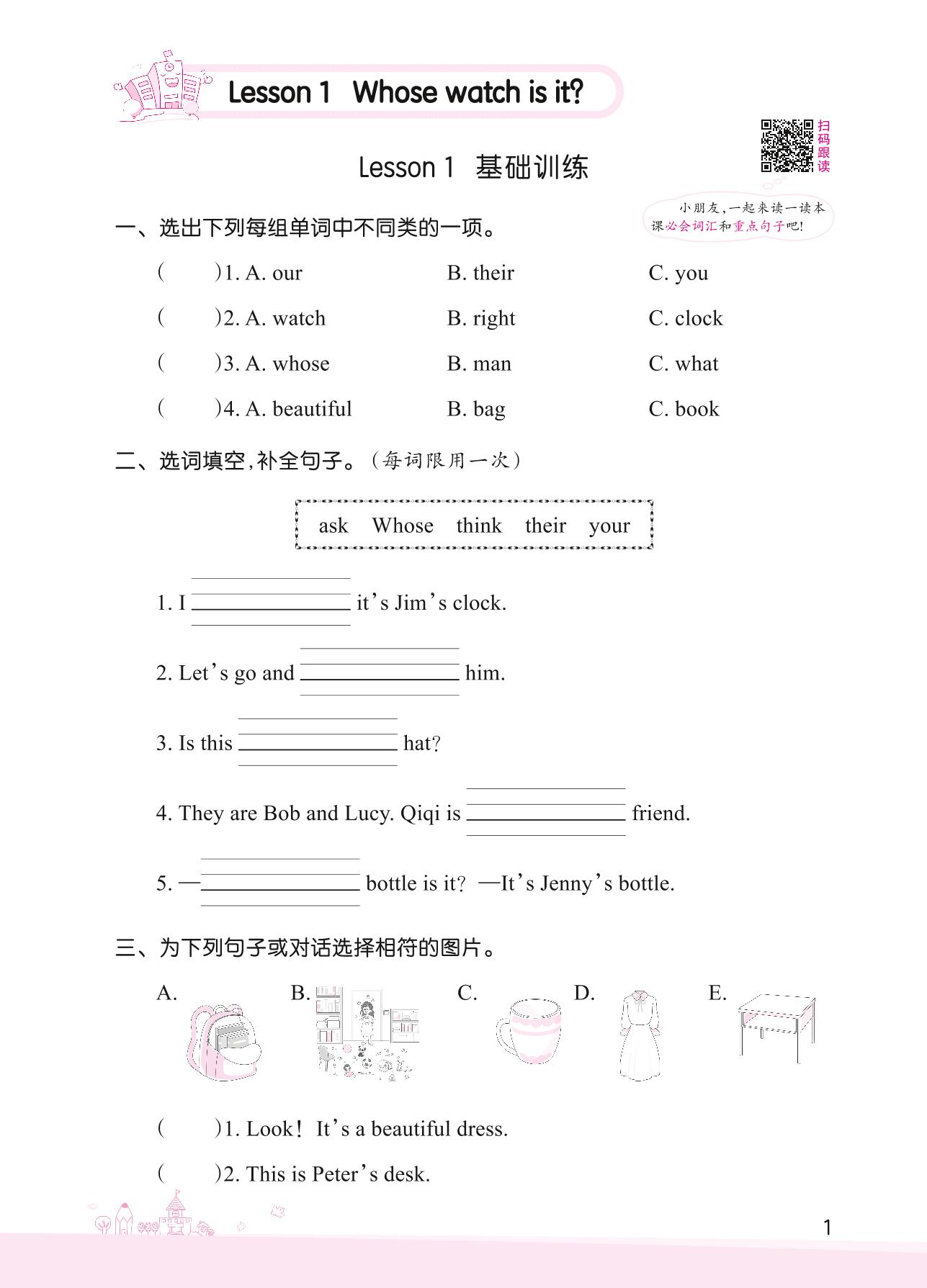 2022下册四年级英语科普版 Lesson 1 基础训练