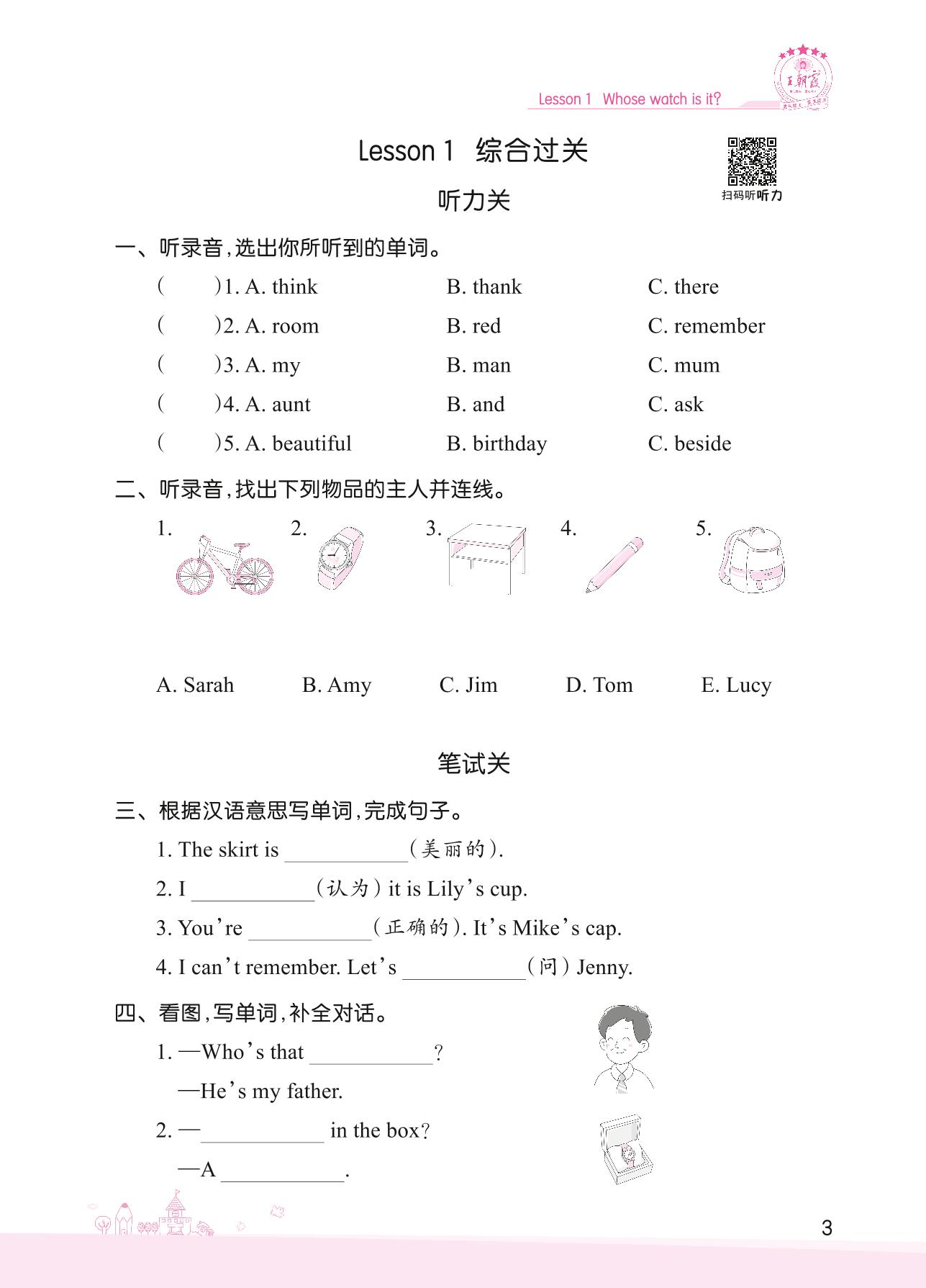2022下册四年级英语科普版 Lesson 1 综合过关