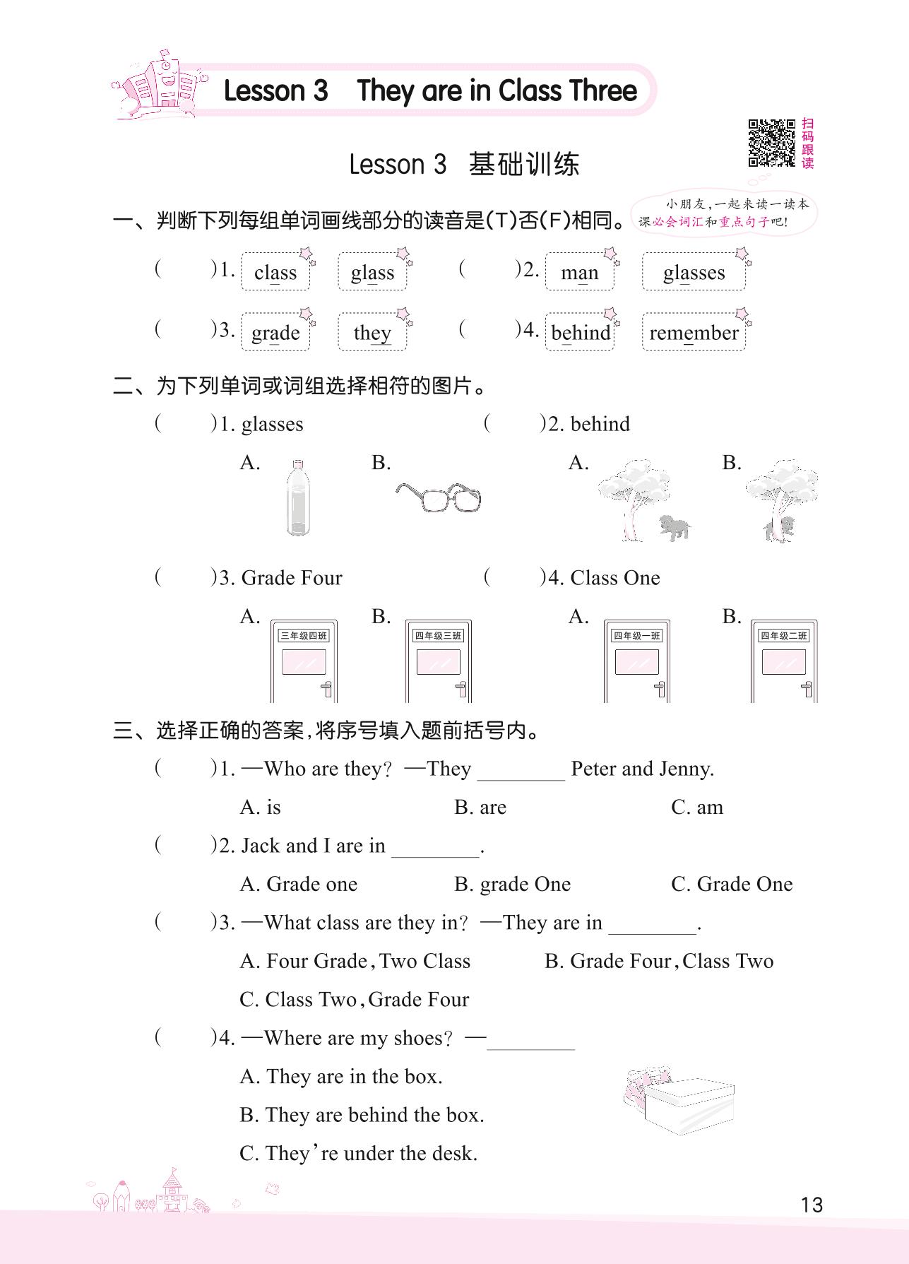 2022下册四年级英语科普版 Lesson 3 基础训练