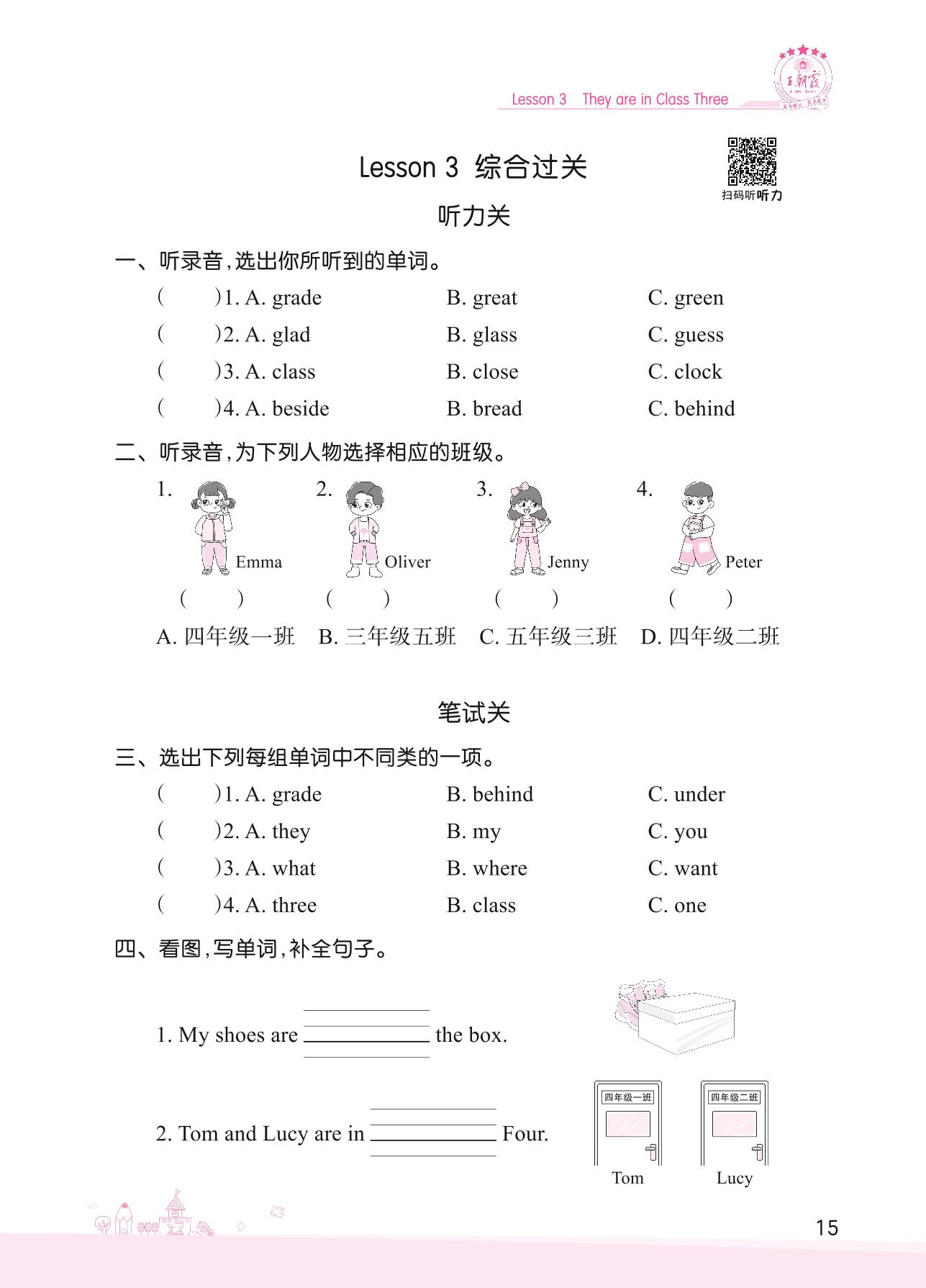 2022下册四年级英语科普版 Lesson 3 综合过关