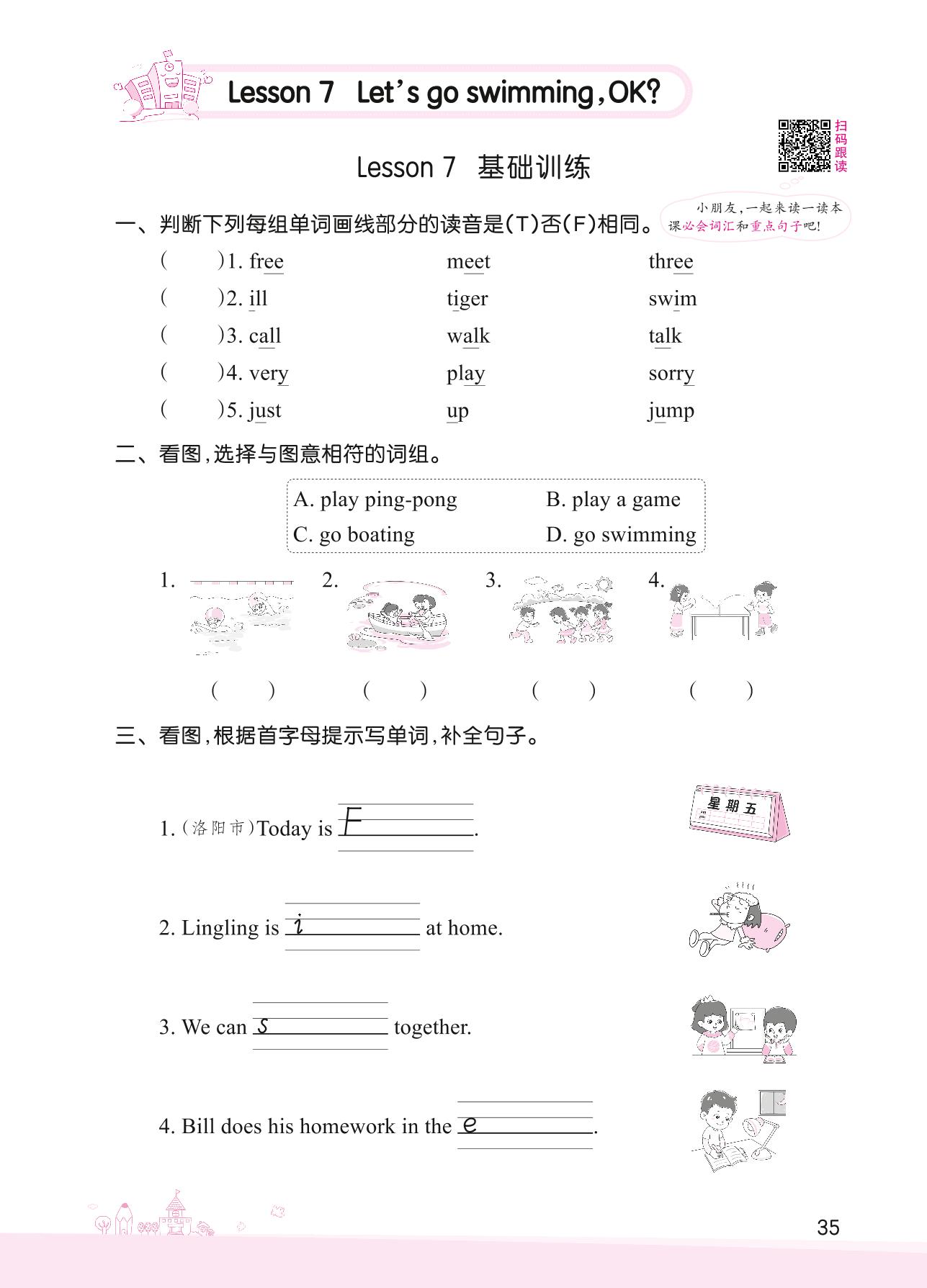 2022下册四年级英语科普版 Lesson 7 基础训练
