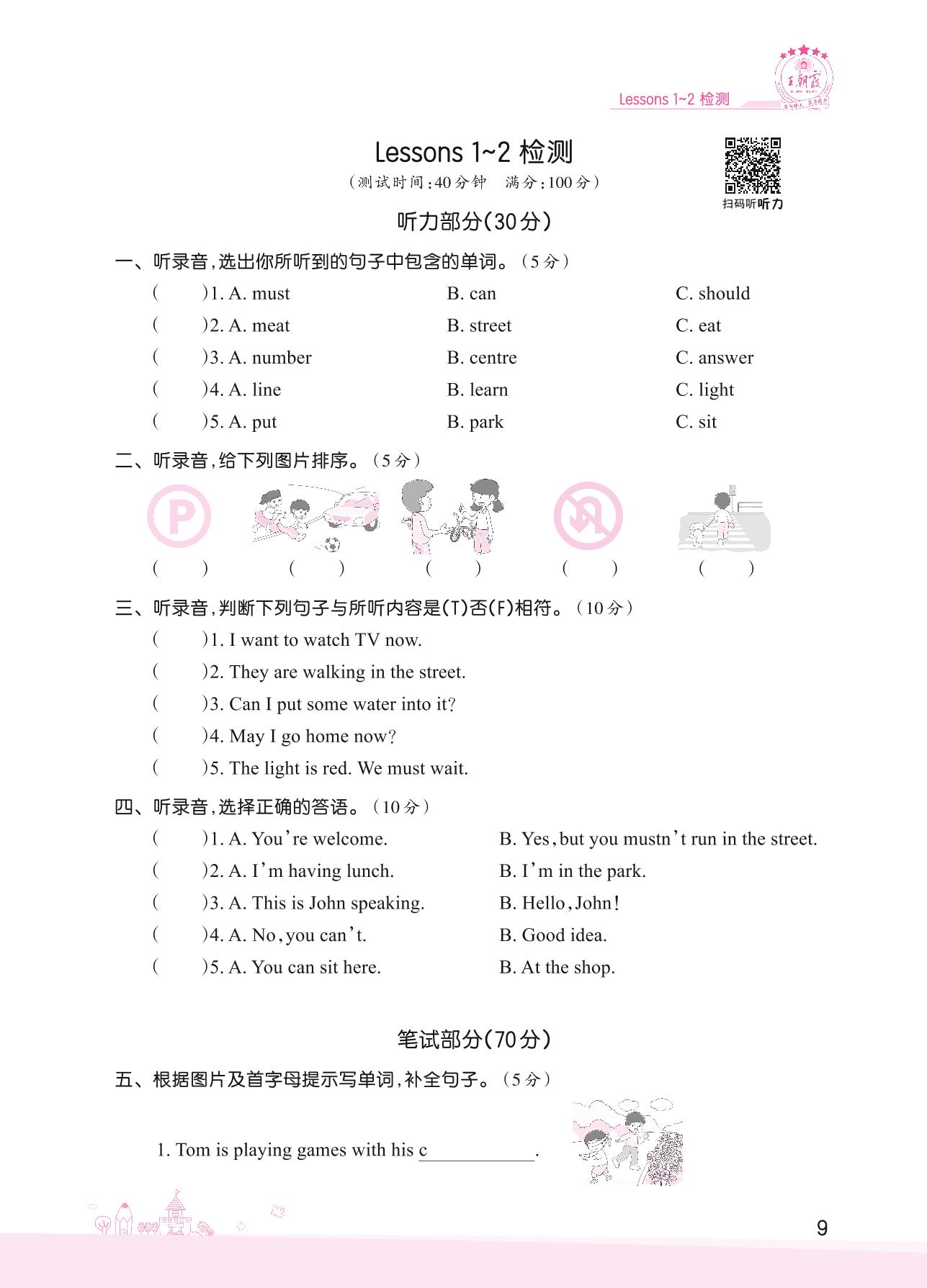 2022下册五年级英语科普版 Lessons 1~2 检测