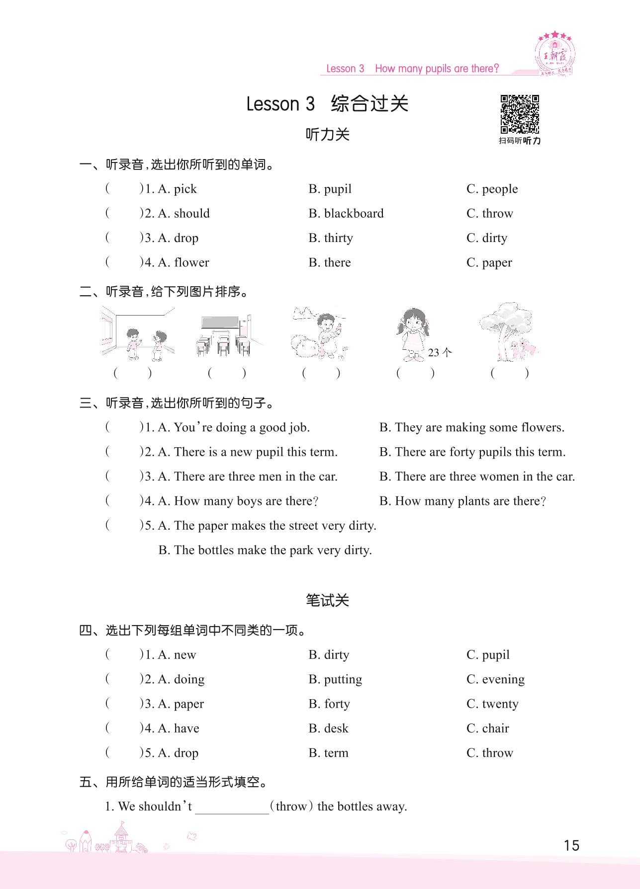 2022下册五年级英语科普版 Lesson 3 综合过关