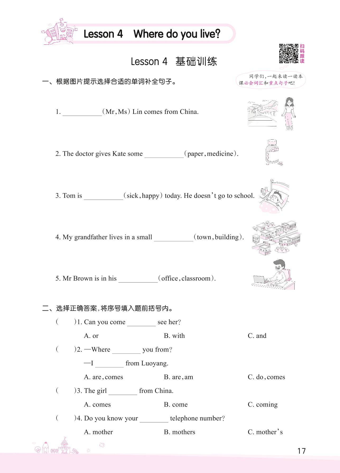 2022下册五年级英语科普版 Lesson 4 基础训练