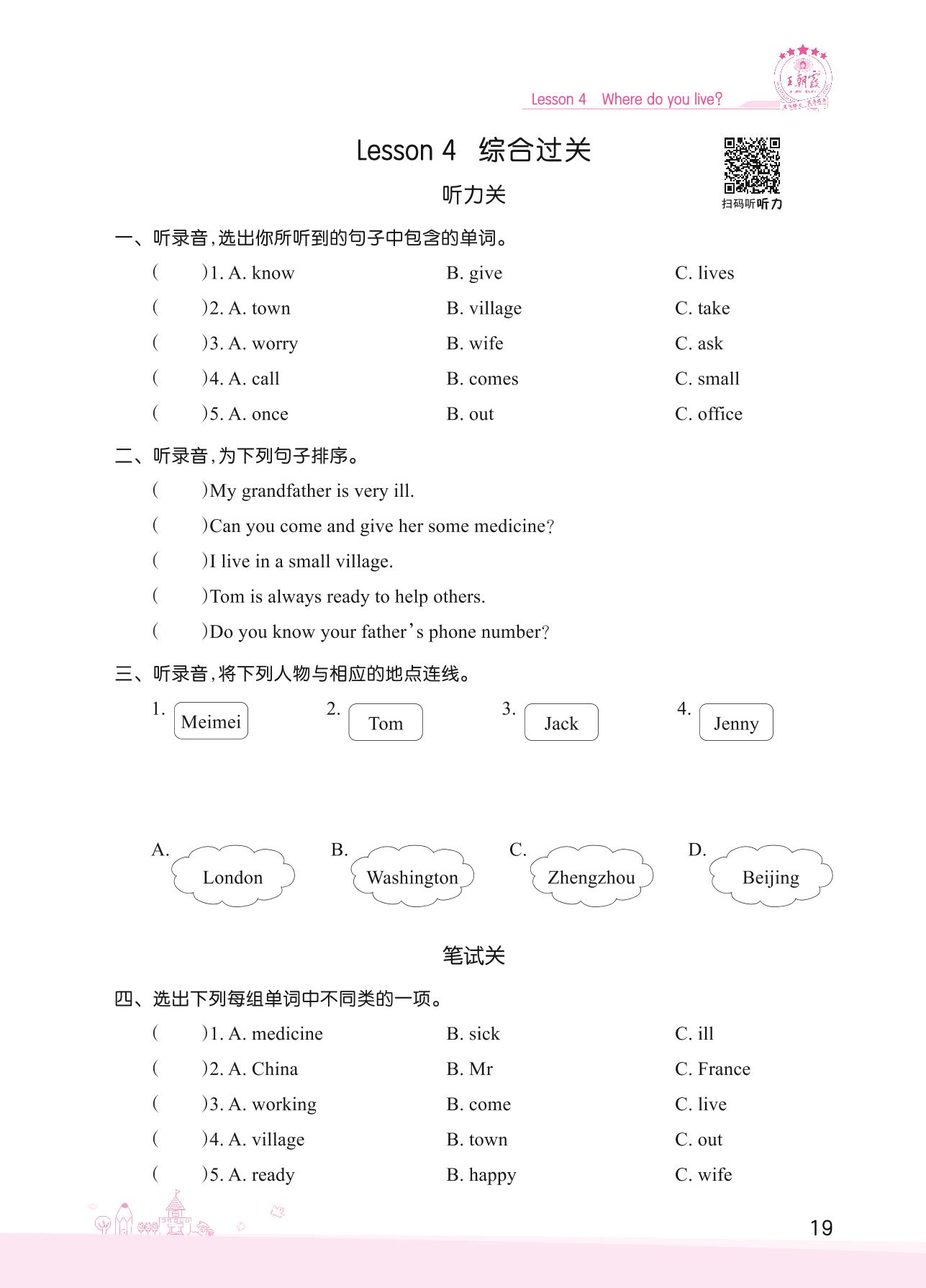 2022下册五年级英语科普版 Lesson 4 综合过关