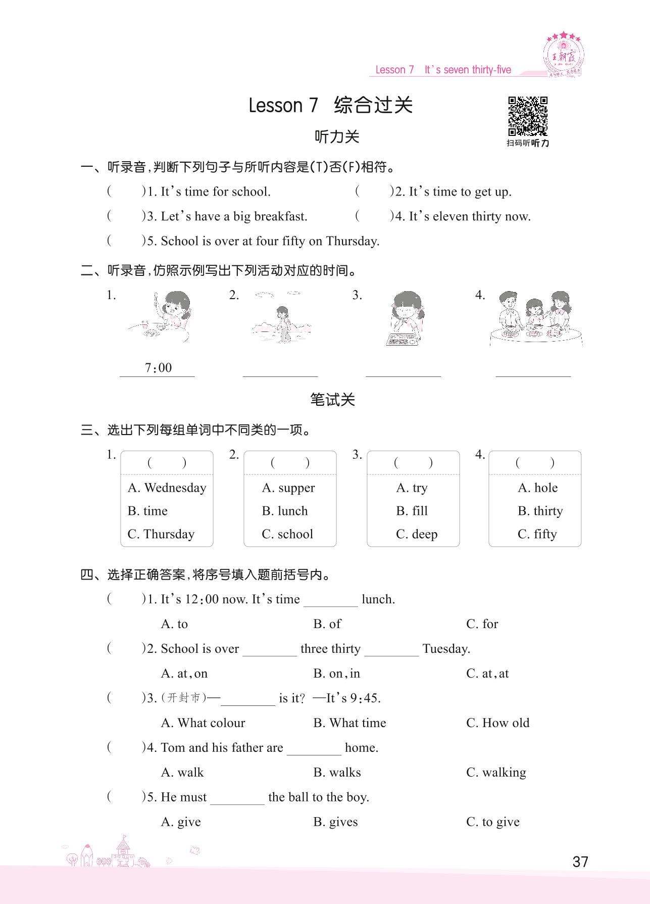 2022下册五年级英语科普版 Lesson 7 综合过关