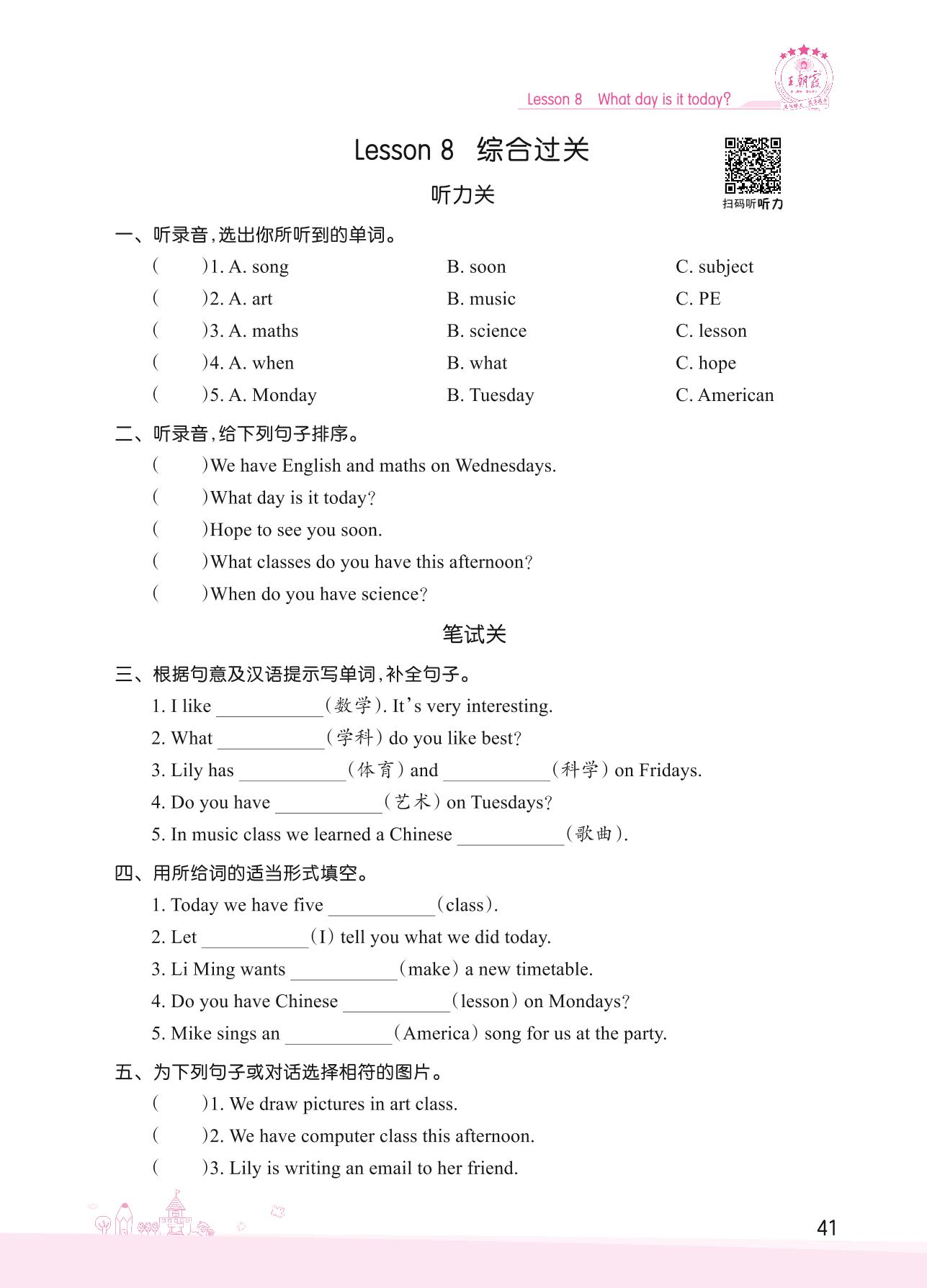 2022下册五年级英语科普版 Lesson 8 综合过关