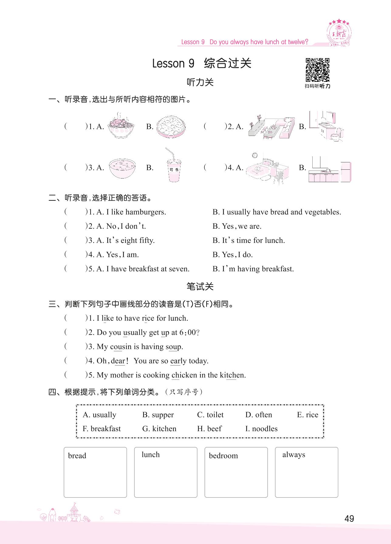 2022下册五年级英语科普版 Lesson 9 综合过关