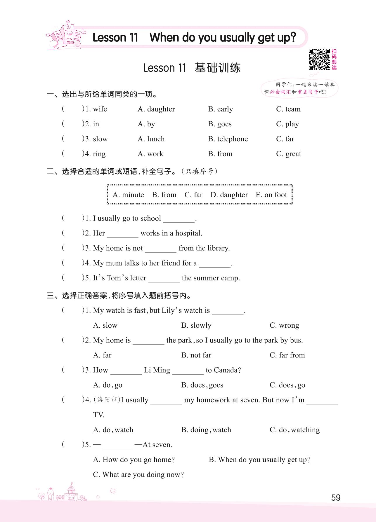2022下册五年级英语科普版 Lesson 11 基础训练