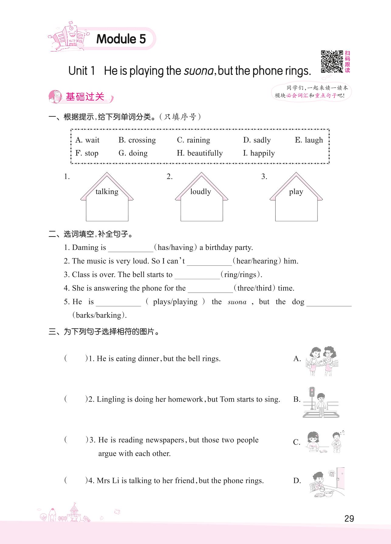 2022下册六年级英语外研版 Module 5—Unit 1 He is playing the suona,but the phone rings.