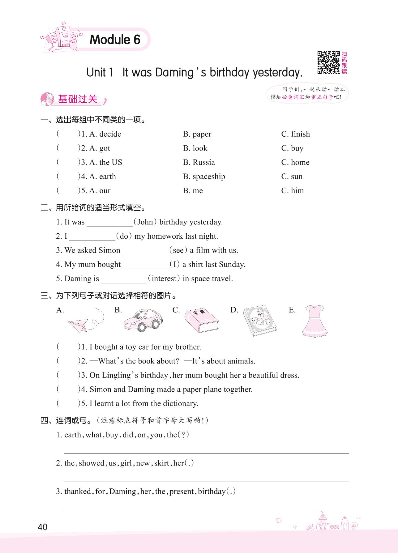 2022下册六年级英语外研版 Module 6—Unit 1 It was Daming’s birthday yesterday.