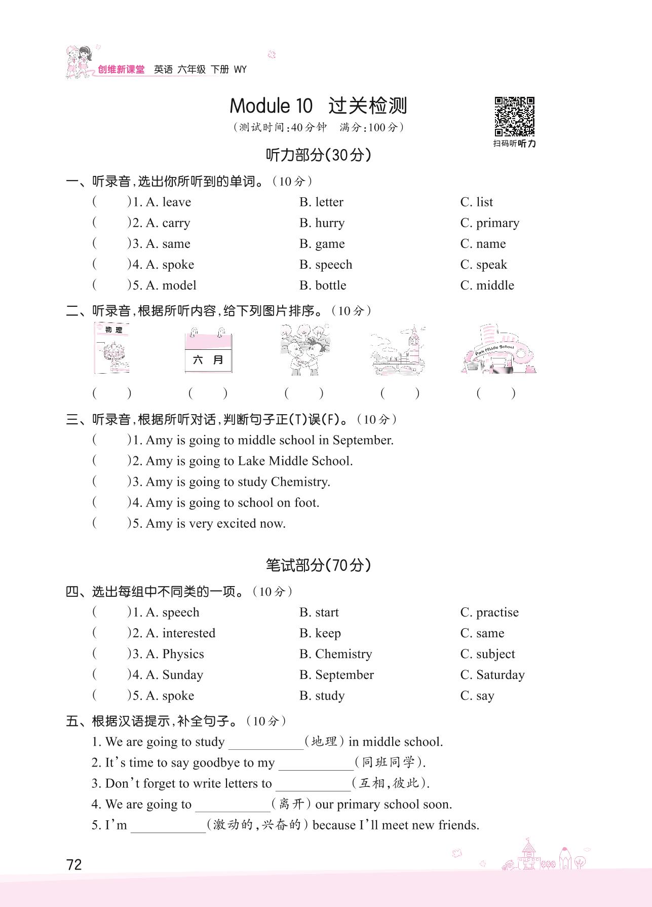 2022下册六年级英语外研版 Module 10 过关检测