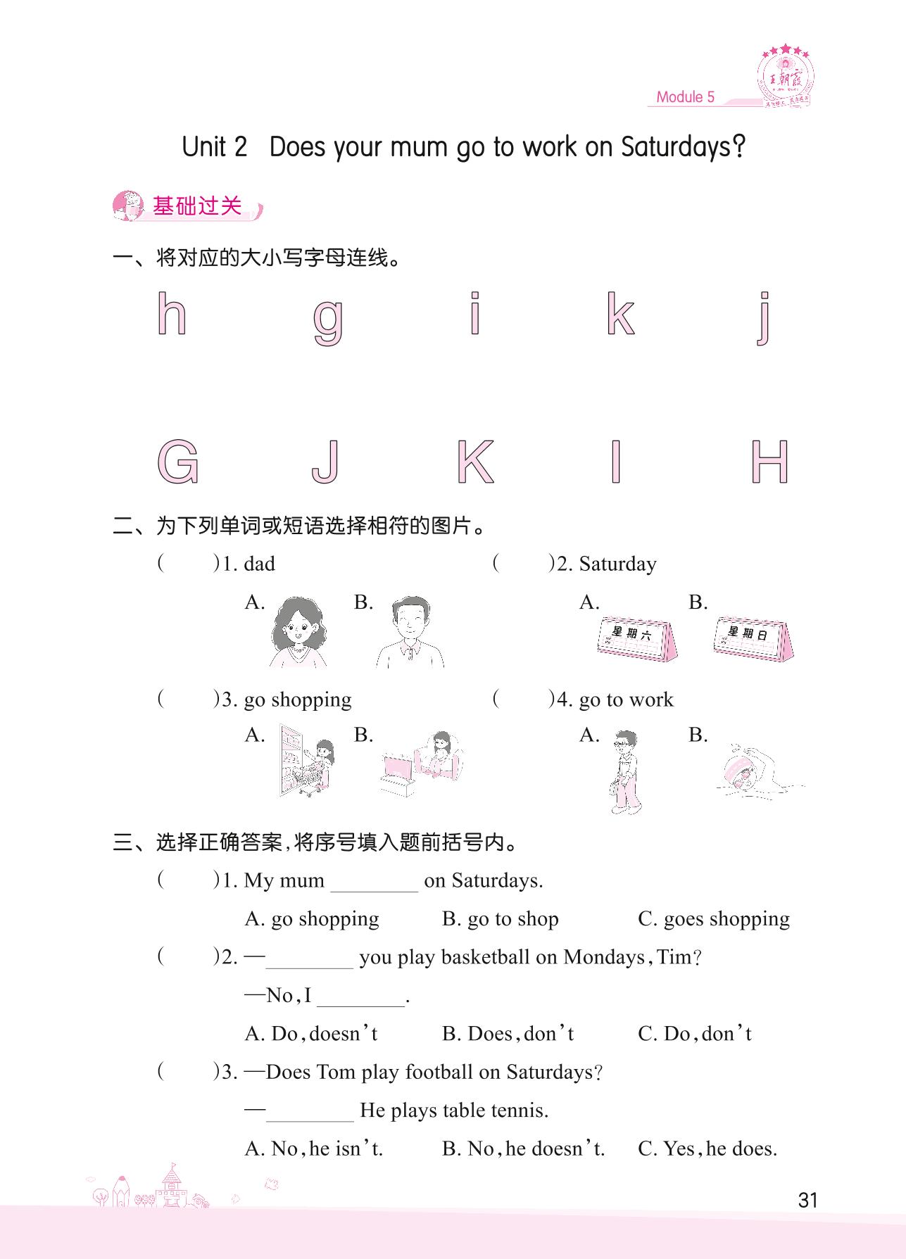2022下册三年级英语外研版 Module 5—Unit 2 Does your mum go to work on Saturdays?