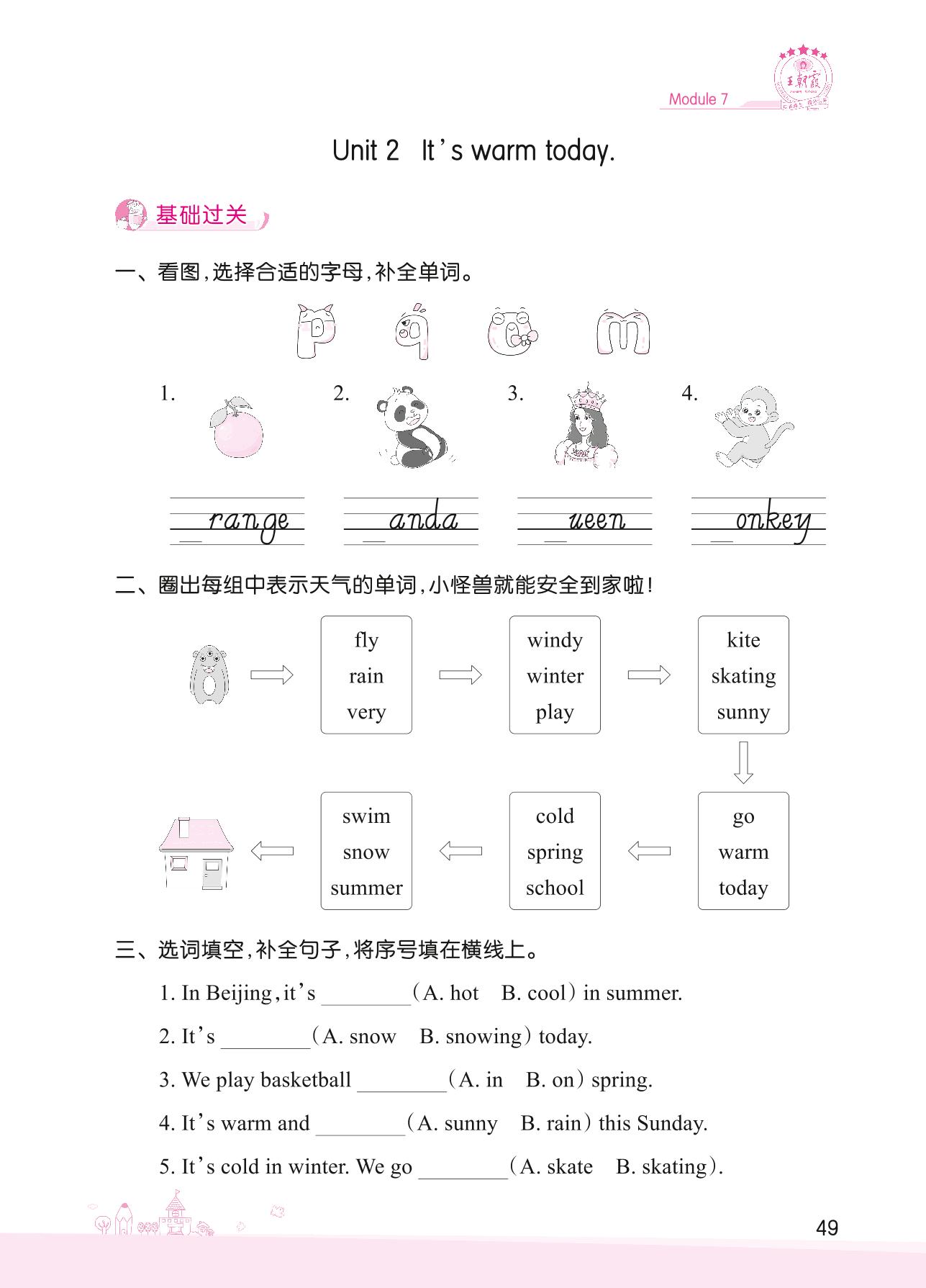 2022下册三年级英语外研版 Module 7—Unit 2 It’s warm today.