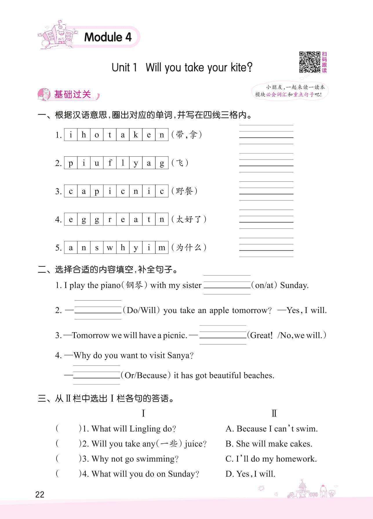 2022下册四年级英语外研版 Module 4—Unit 1 Will you take your kite?