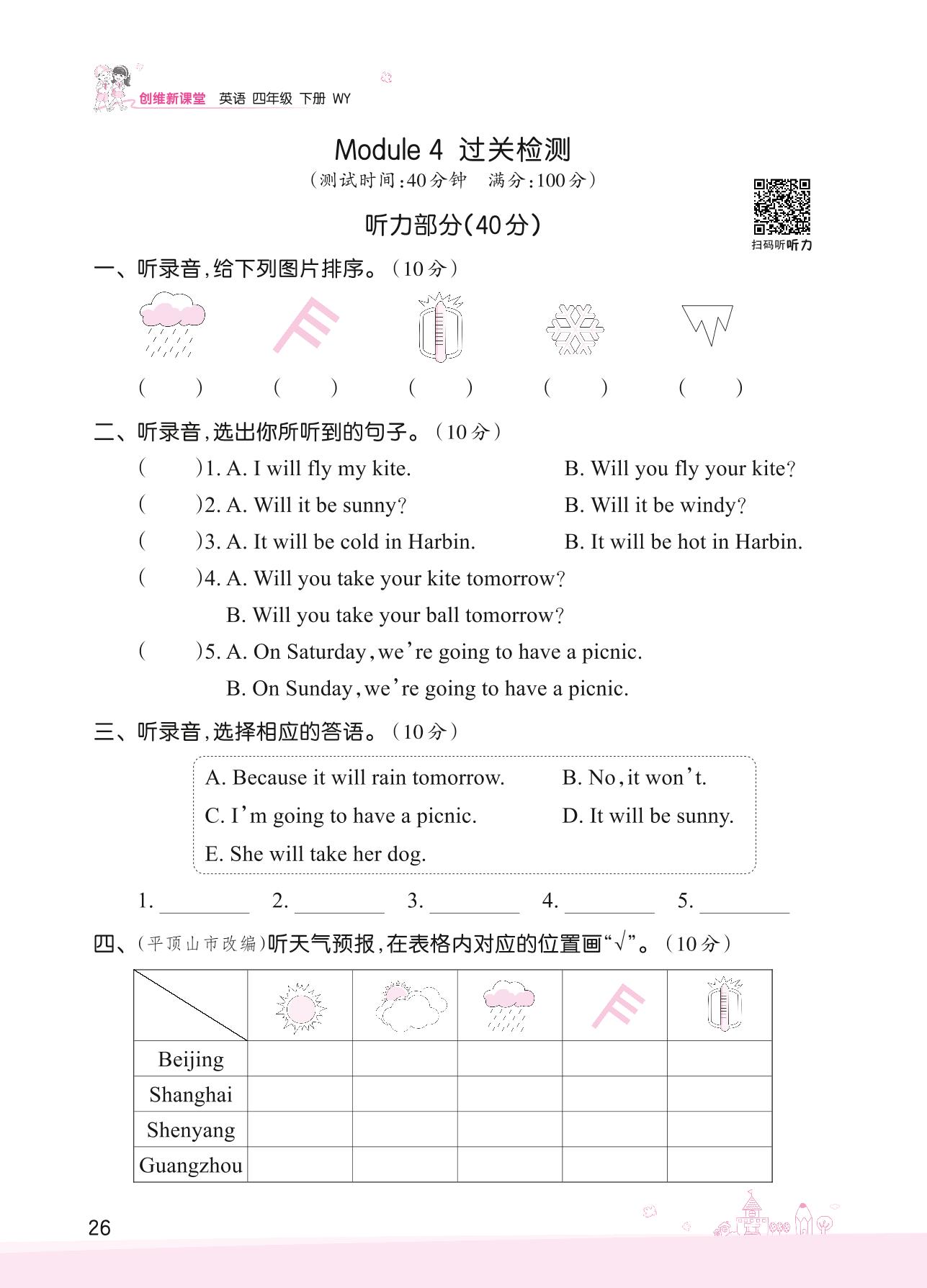 四年级英语外研版(三起始)下册单元卷